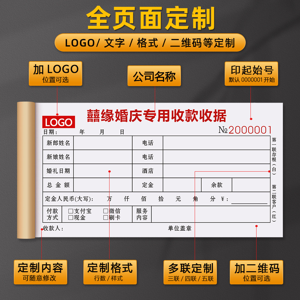 【婚庆专用收据】收款收剧婚纱店租赁单婚车预约单据婚礼押金票据