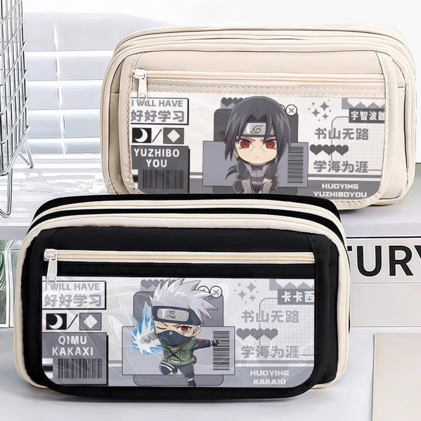 Q版火影笔袋佐助带土鸣人大容量小学初中女生男孩文具盒多层收纳
