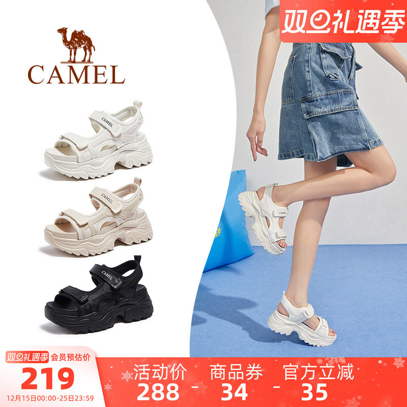 骆驼女鞋2025夏季新款厚底凉鞋女老爹运动增高沙滩鞋女款鞋子清仓