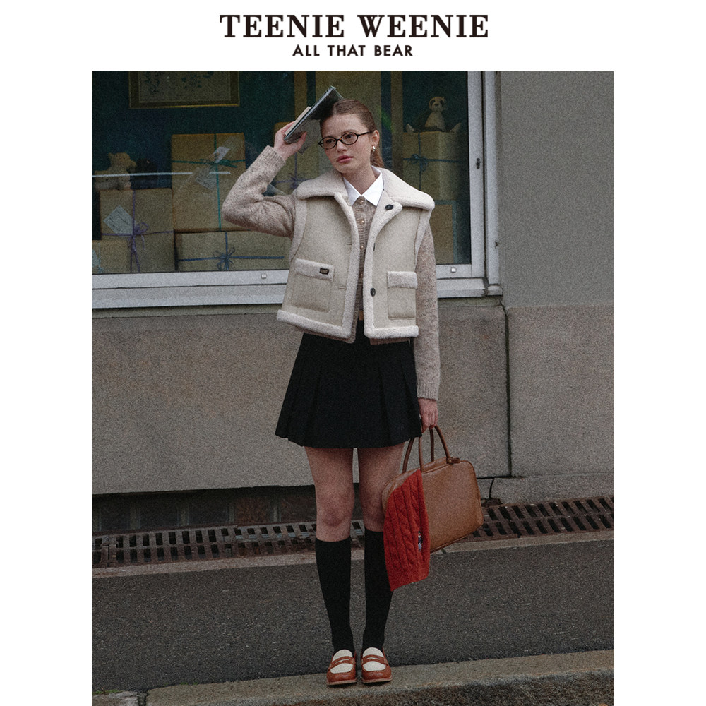 TeenieWeenie小熊奥莱女装简约半身裙冬季学院风百褶可爱裙子