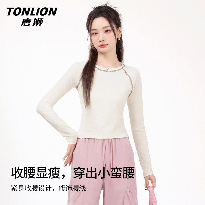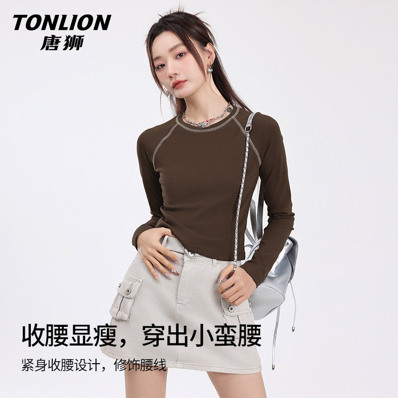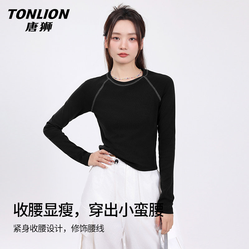 唐狮黑色长袖t恤女2026新款秋款小个子修身上衣显瘦内搭打底衫VB