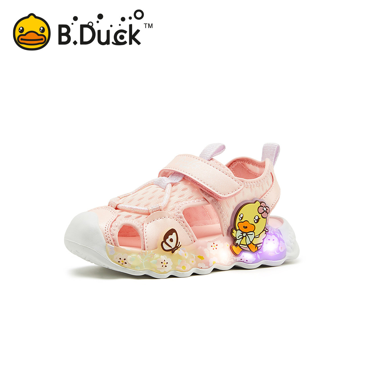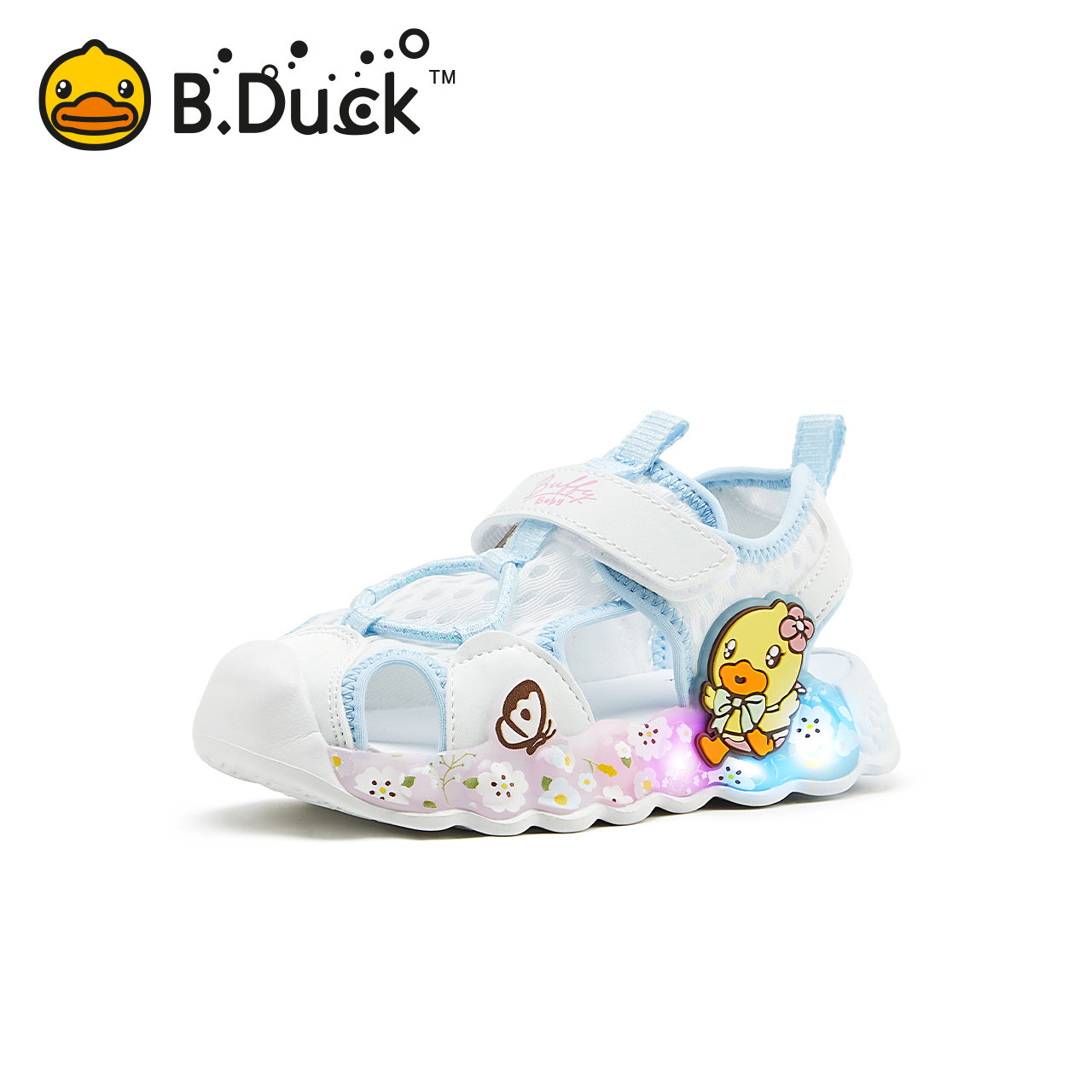 小黄鸭童鞋女童包头凉鞋儿童亮灯鞋夏季女孩宝宝鞋子小童发光鞋潮
