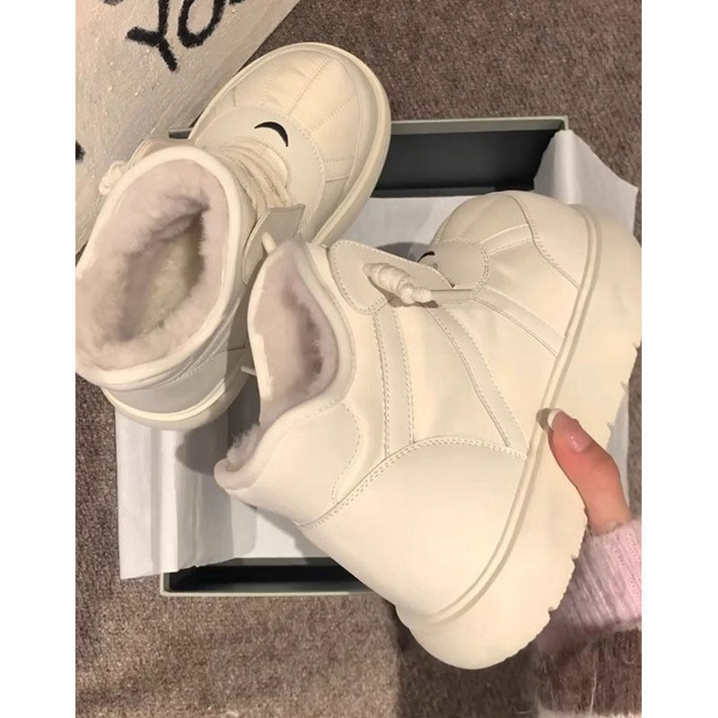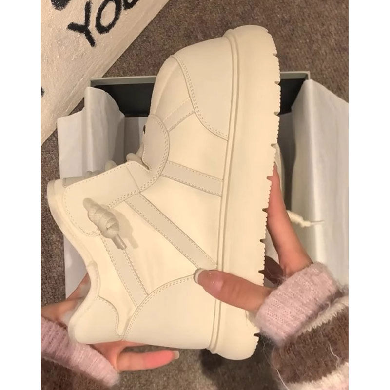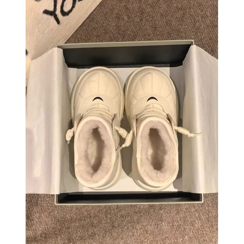 miu家厚底雪地靴女冬季真皮短靴羊毛侧拉链增高厚底加绒毛毛棉鞋