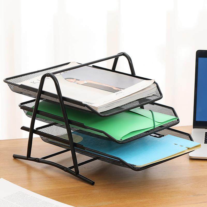 网状文件架三层四层文件盘资料收纳框置物架金属档案文件管理架