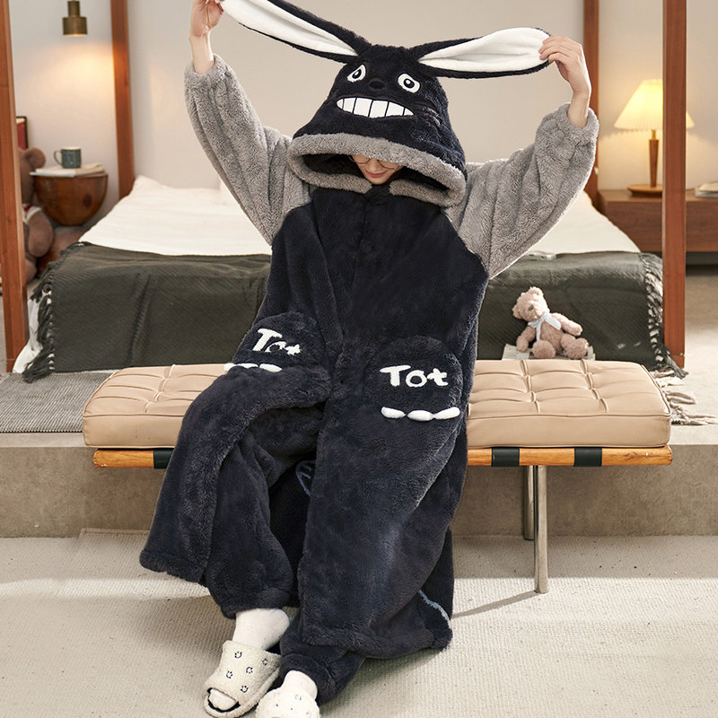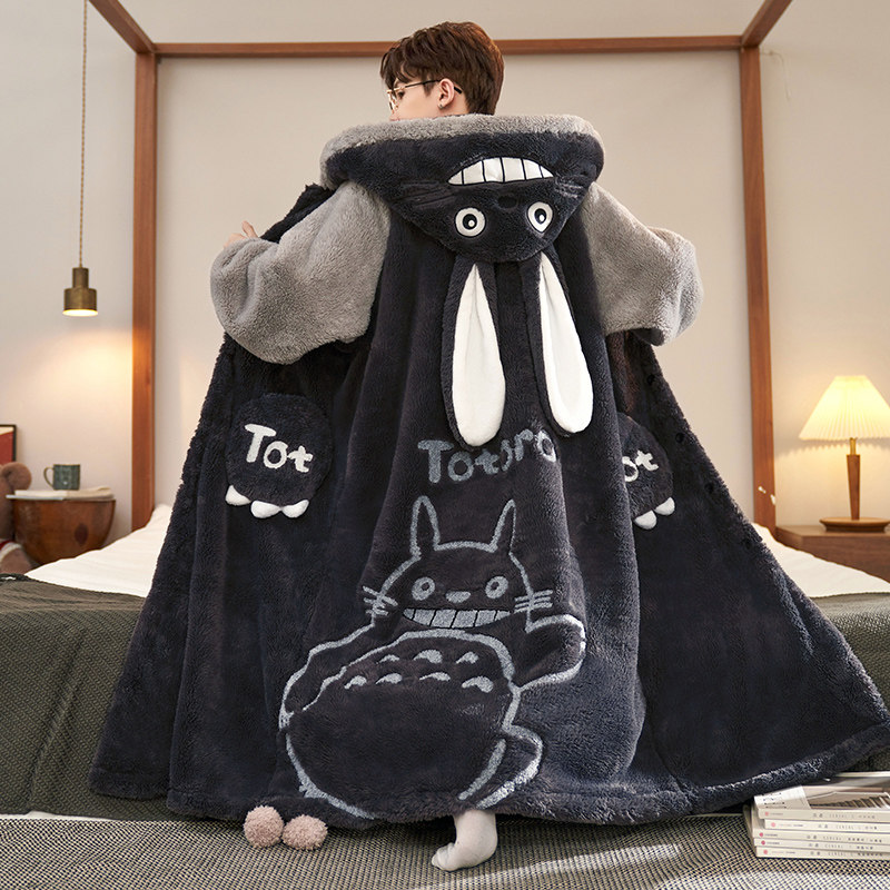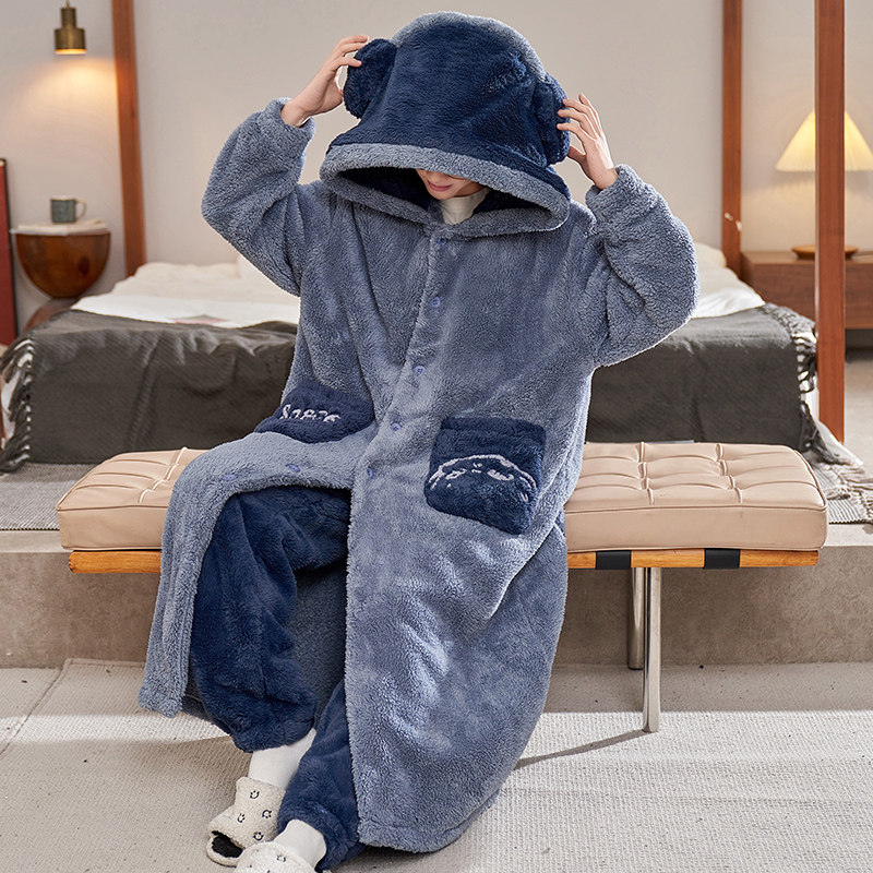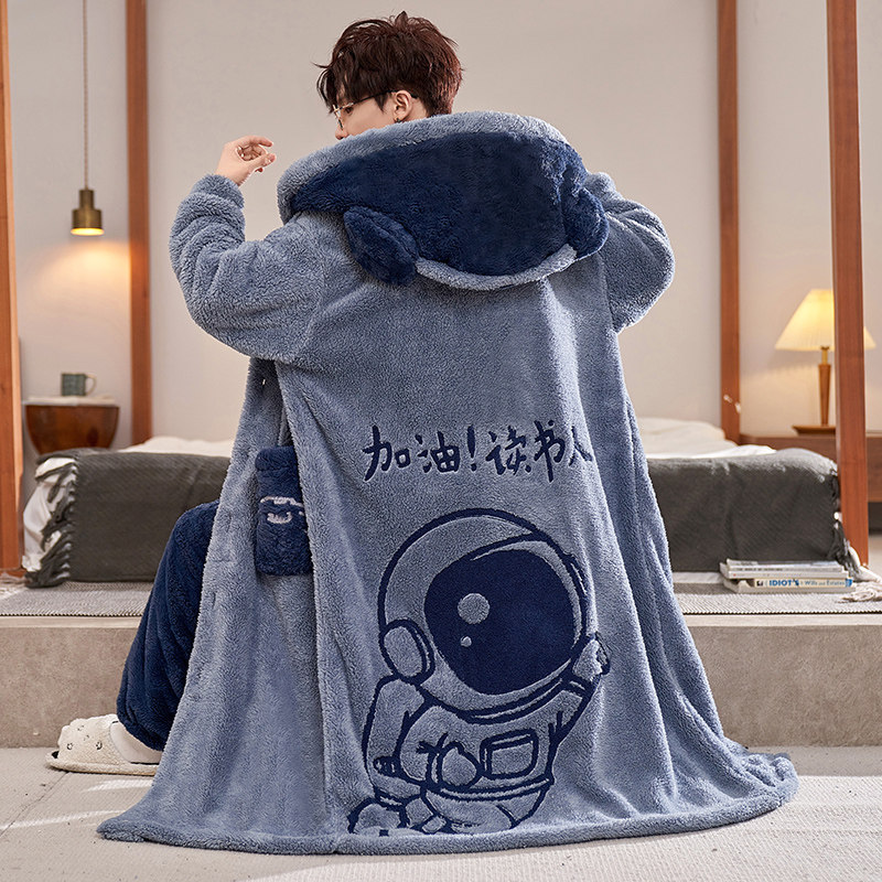 宇航员秋冬季加厚珊瑚绒男士睡衣保暖浴袍加肥加大睡袍家居服套装