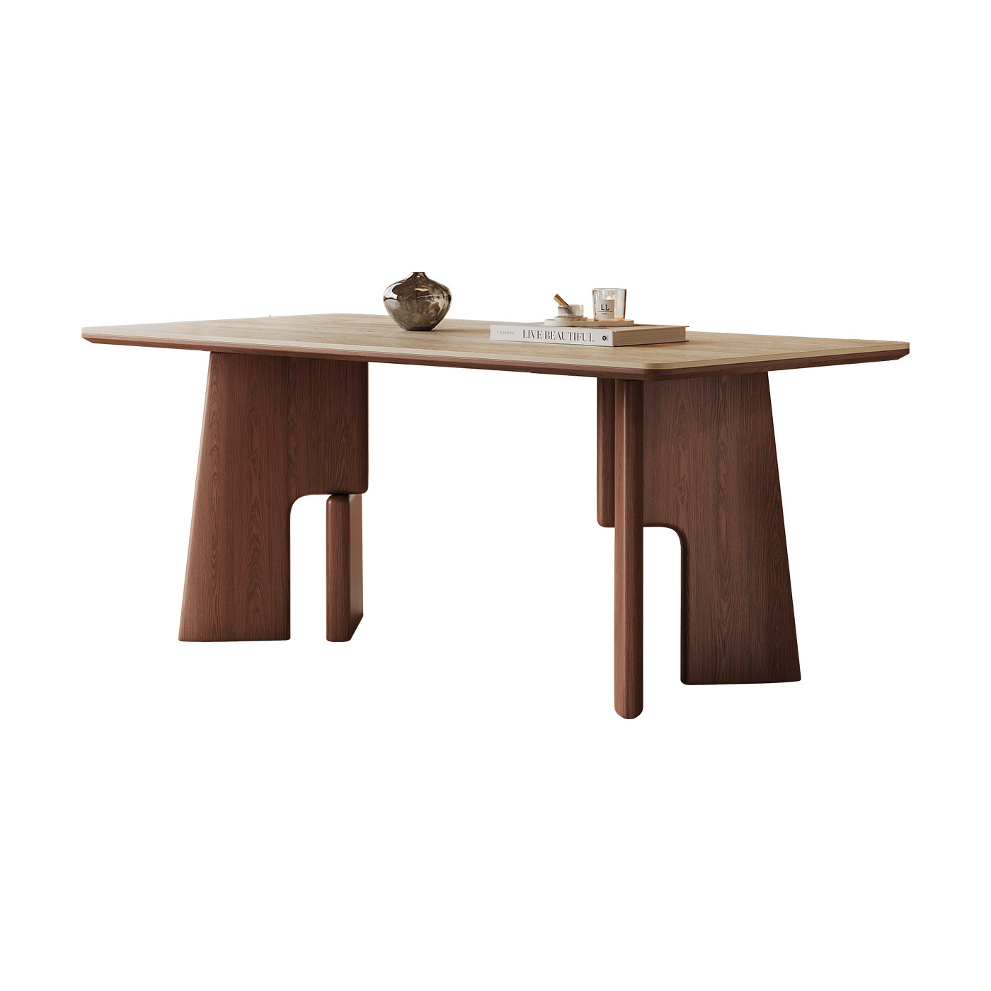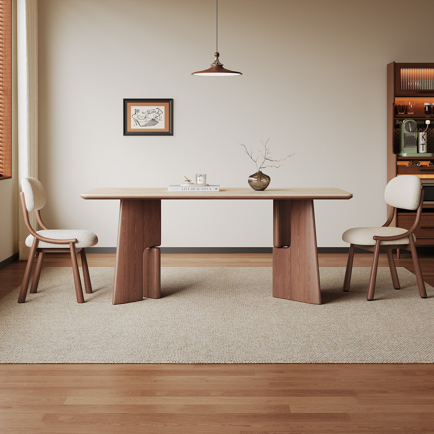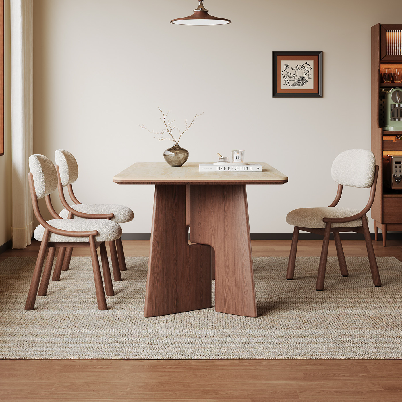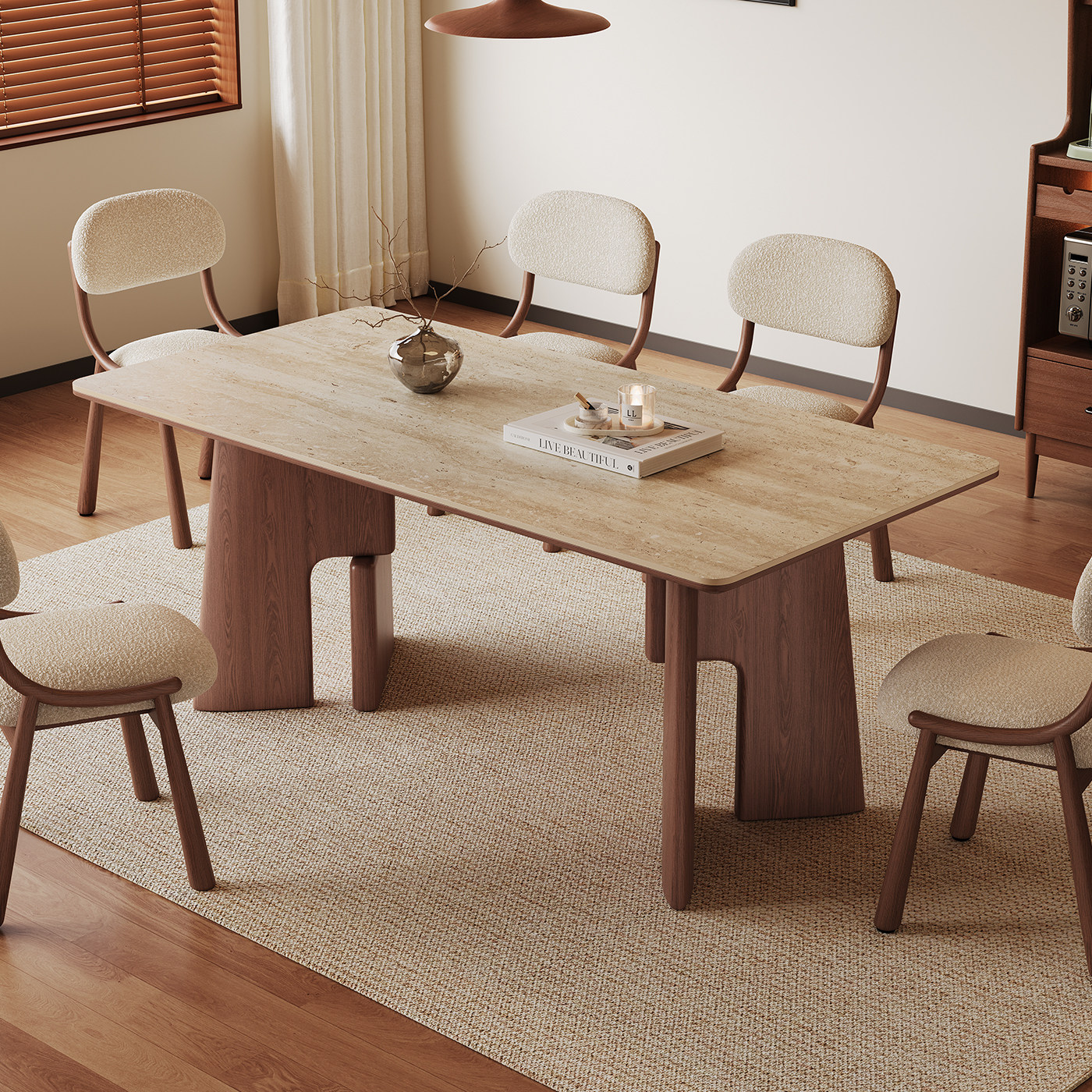 中古风洞石岩板餐桌家用小户型2025新款高端胡桃木色全托实木餐桌