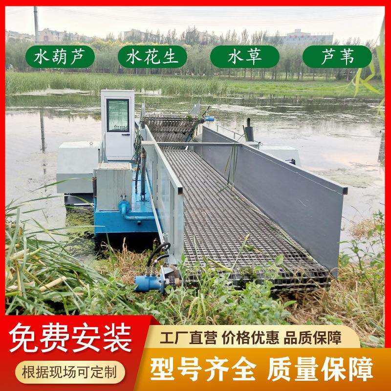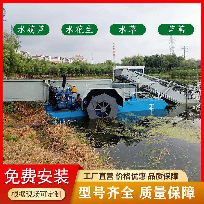 水中芦苇水草收割船 水浮萍水草收集打捞机械 水花生收割清草船