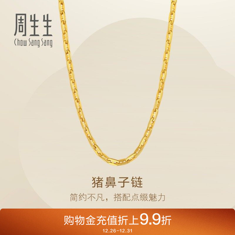 周生生爆闪黄金足金Essence永系列猪鼻子项链素链95814N