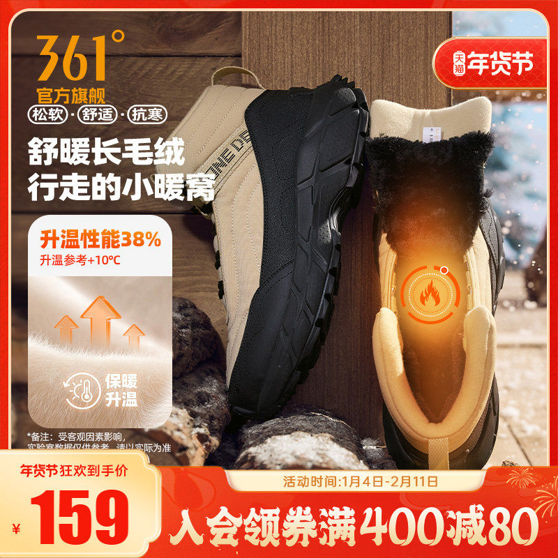 绒雪361运动鞋男鞋2025冬季新款加绒保暖大棉鞋防水防滑休闲鞋子