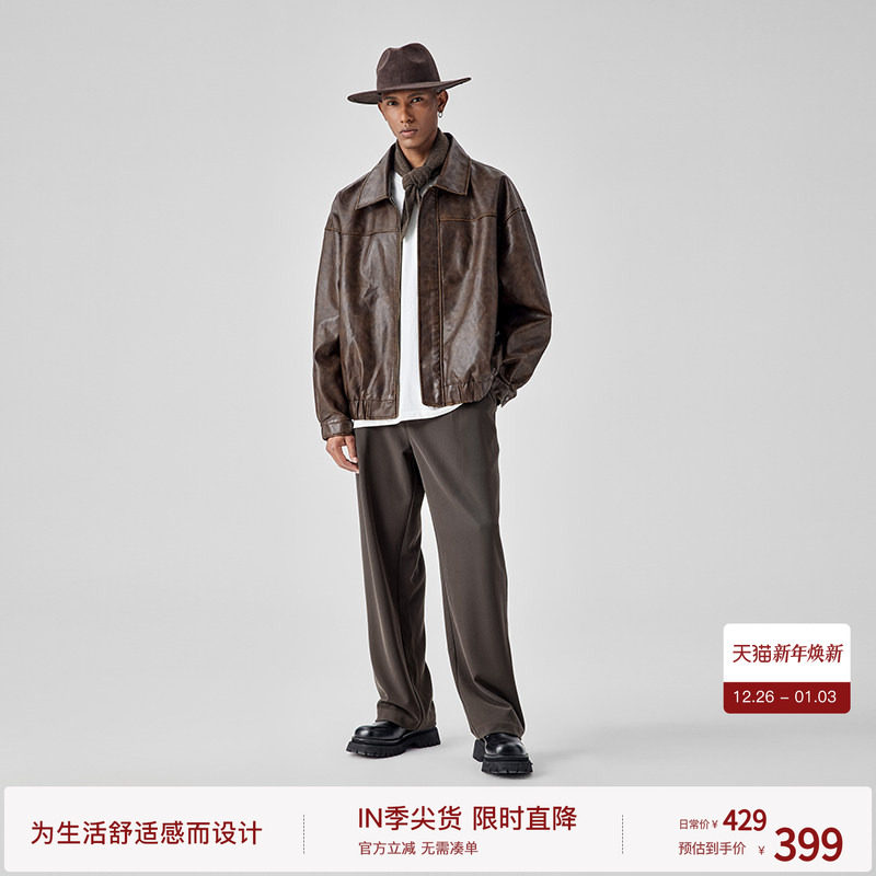 BODYDREAM复古做旧皮衣外套男街头廓形休闲通勤翻领夹克/挺阔抗皱