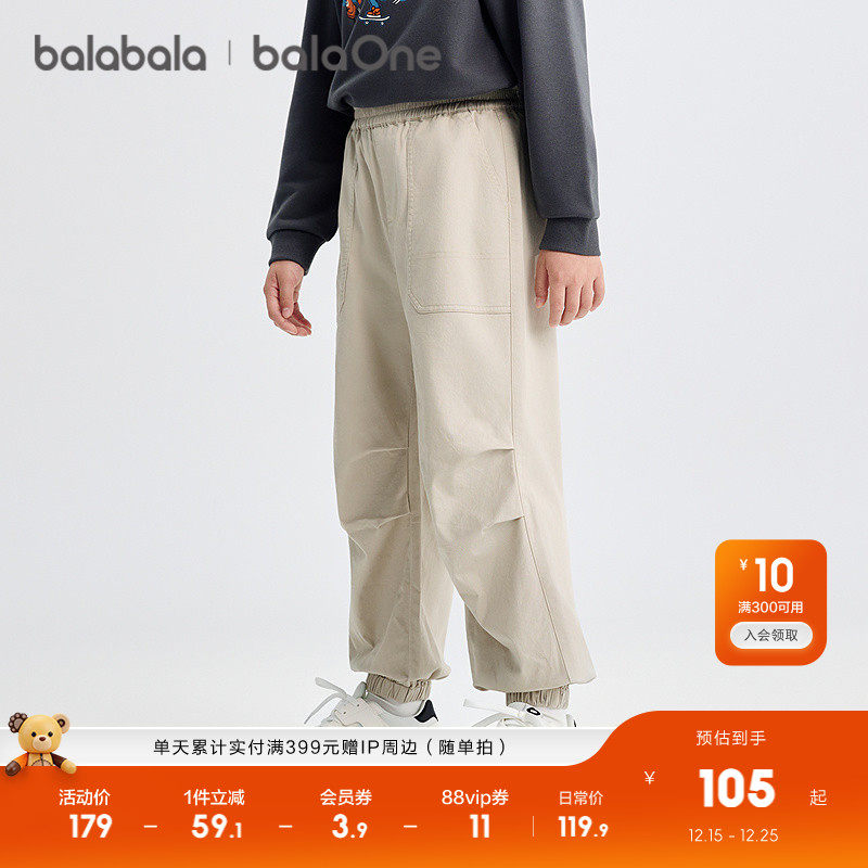 巴拉巴拉童装儿童裤子男童女童2025新款春秋装夏薄款运动防蚊长裤