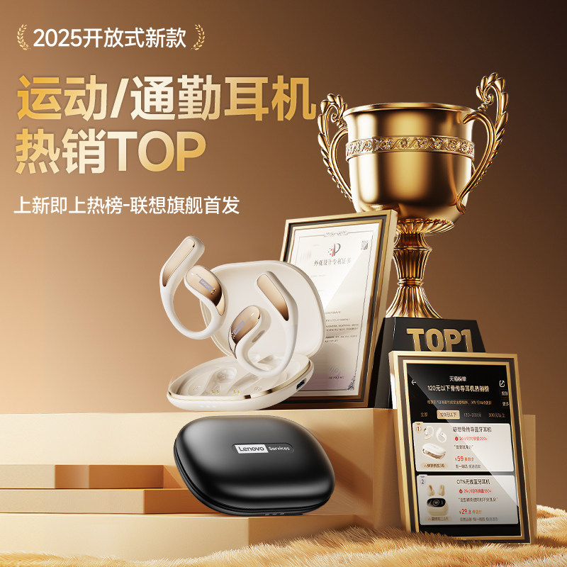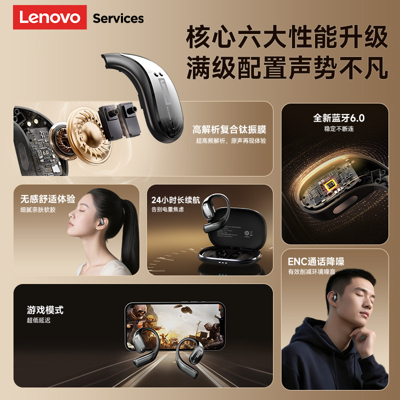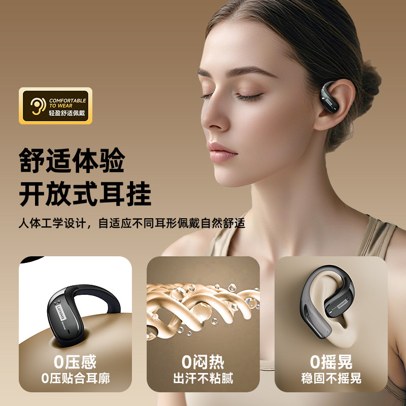 联想新款运动挂耳式蓝牙耳机跑步无线降噪气骨传导开放式长续航