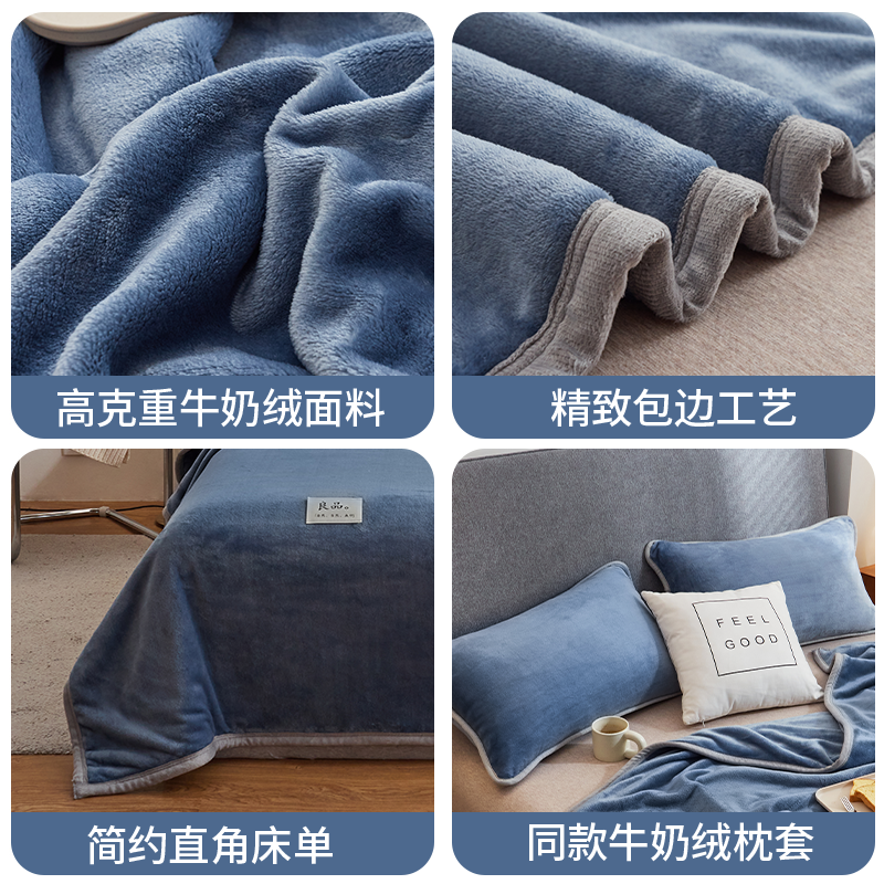 无印良品牛奶绒床单单件冬季加厚毛绒被单珊瑚绒宿舍单人加绒毛毯
