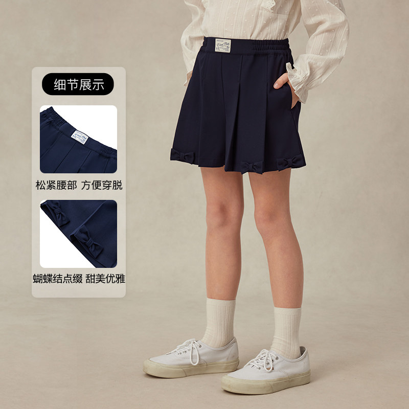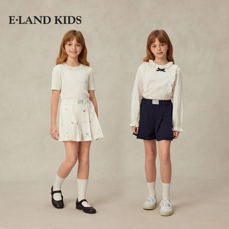 【零染科技】eland kids衣恋童装女童裙裤25年夏新品学院百褶短裤