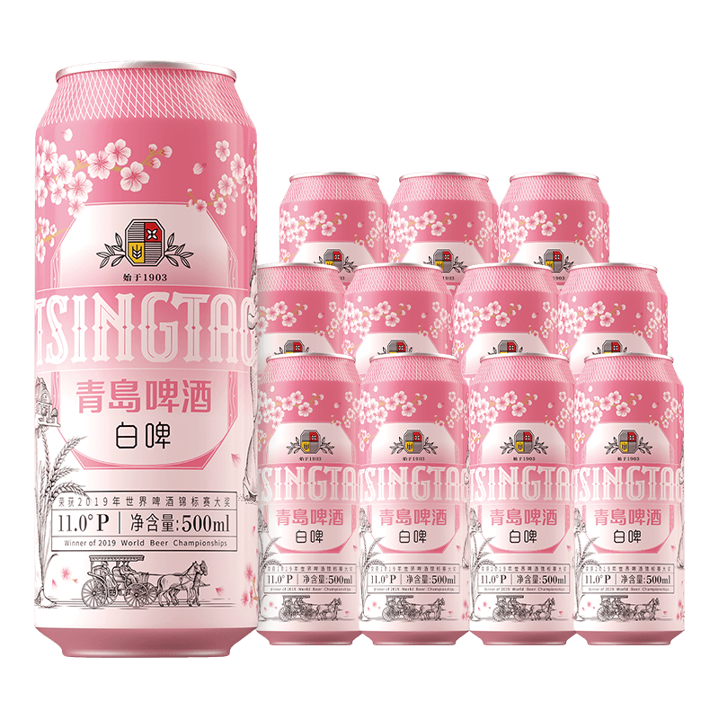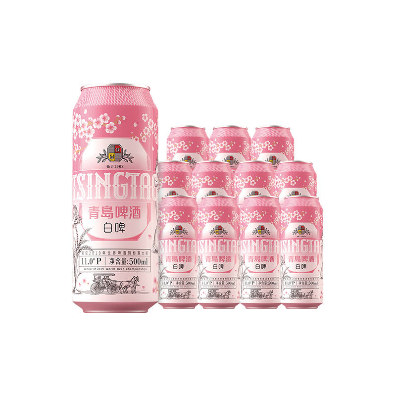 【渠道】青岛啤酒樱花主题版白啤500ml*12听 全麦酿造麦香花果香