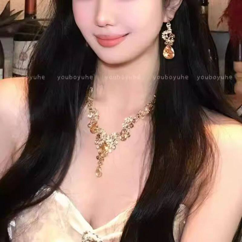 千金琉璃~超闪金色水滴项链女轻奢精致名媛耳环夸张晚宴礼服配饰