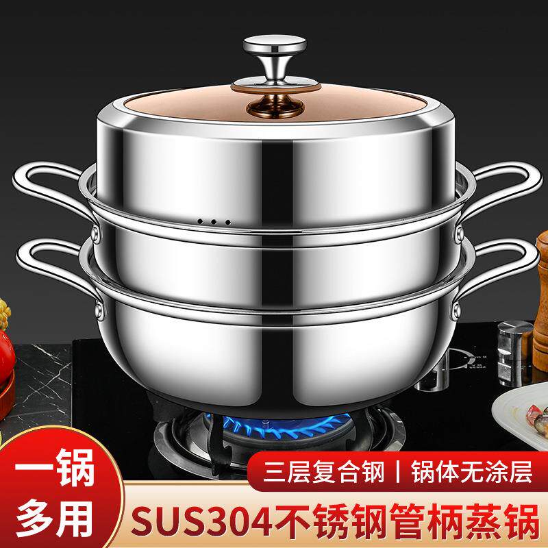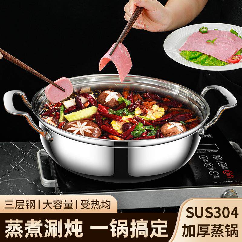 苏泊尔304不锈钢多用蒸煮汤锅汤煲特加厚汤锅家用三层复合钢双耳