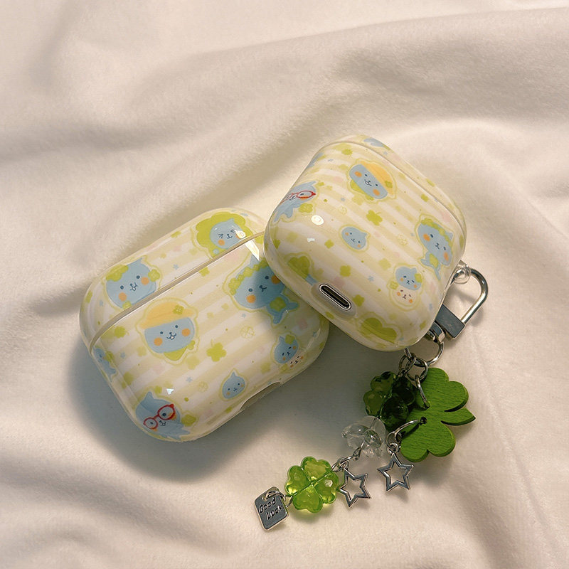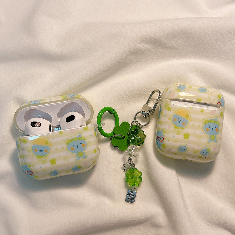 夏日清新四叶草酷儿适用AirPods4保护套新款iPod苹果耳机壳挂饰1/2代无线蓝牙3代airpodspro2代软防摔保护壳