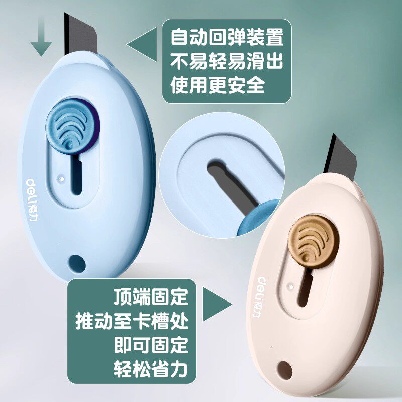 得力黑刃美工刀小型开箱刀拆快递包裹刀安全刀具小刀开箱神器钥匙扣手工自动裁纸小号随身便携批发多功能墙纸
