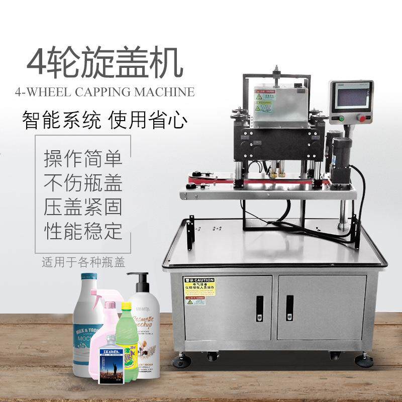 全自动旋盖机四轮拧盖机螺纹盖鸭嘴泵头盖搓盖自动上盖锁盖机商用