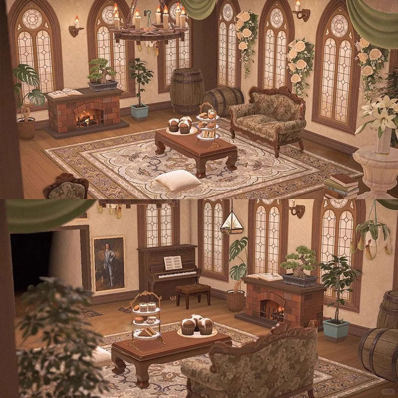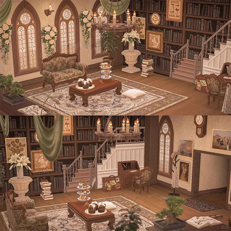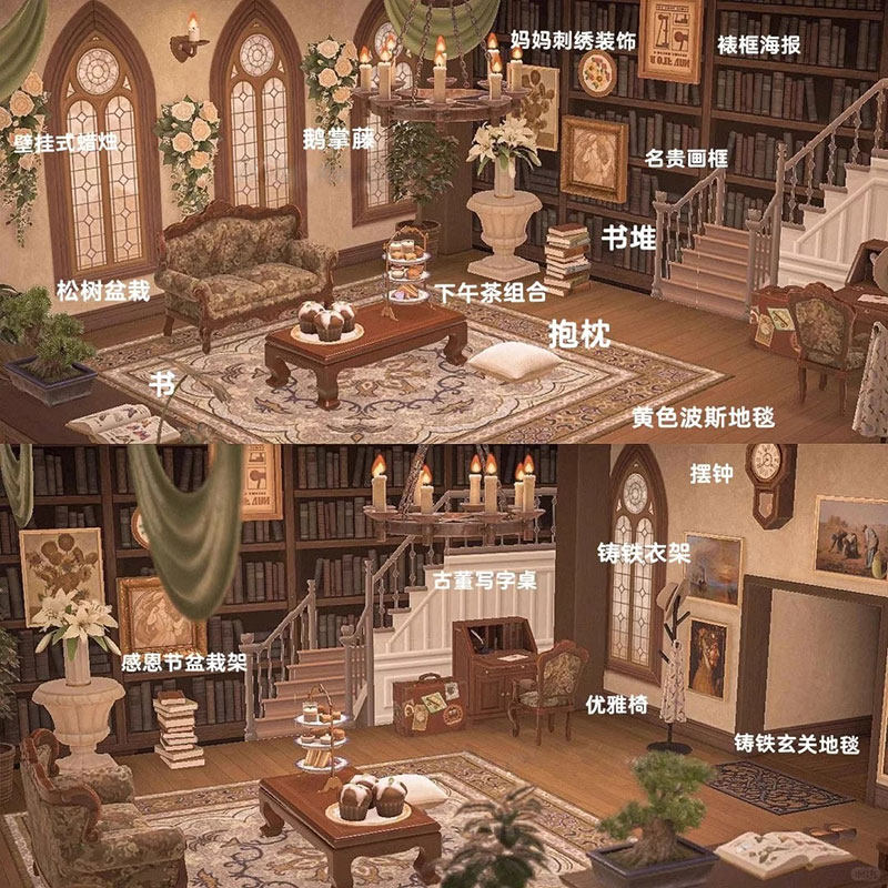 qp文艺复古图书客厅 动森室内外家具设计素材动物之森友会岛屿diy