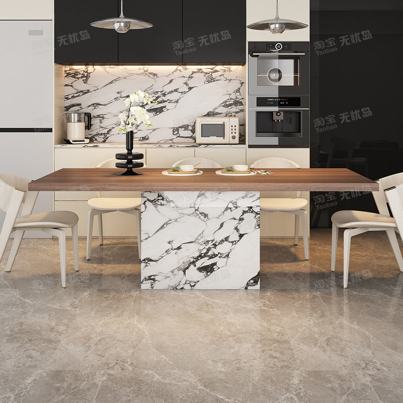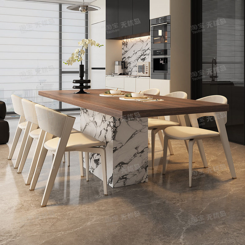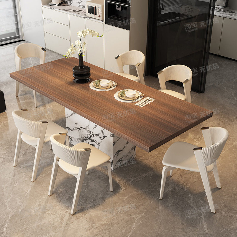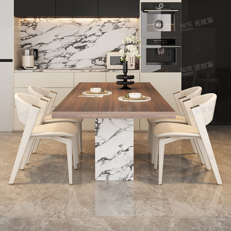 轻奢高级感长方形岩板餐桌木纹岩板2026新款高级感小户型一桌四椅