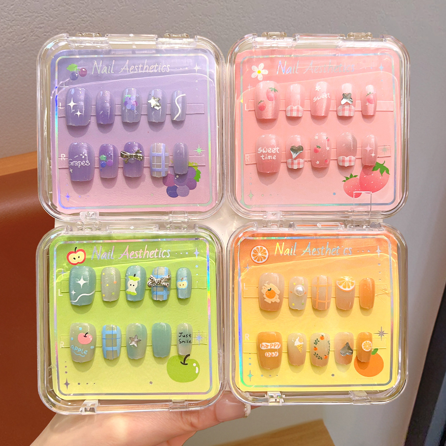 儿童穿戴甲短款甜美显白2026新款女童可爱水果樱桃草莓美甲贴纸小女孩生日礼物软甲片可拆卸多巴胺指甲贴装饰