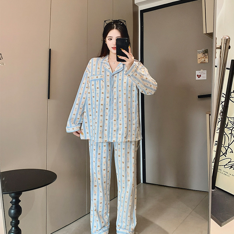 cutelife【轻羽】月子服女士长袖家居服孕妇竹棉哺乳睡衣秋冬套装