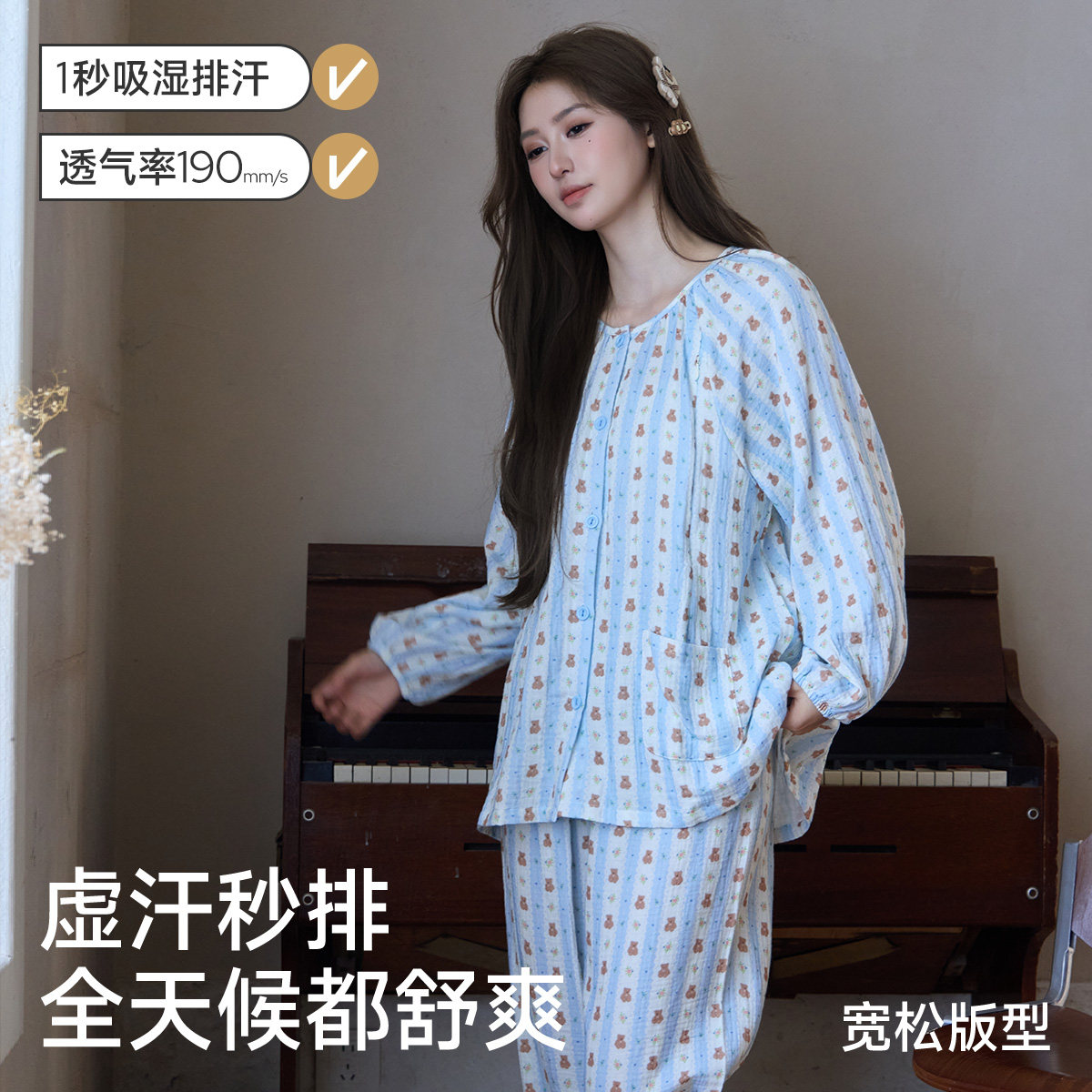 空气棉月子服秋冬纯棉产后夏季薄款全棉吸汗喂奶产妇哺乳孕妇睡衣