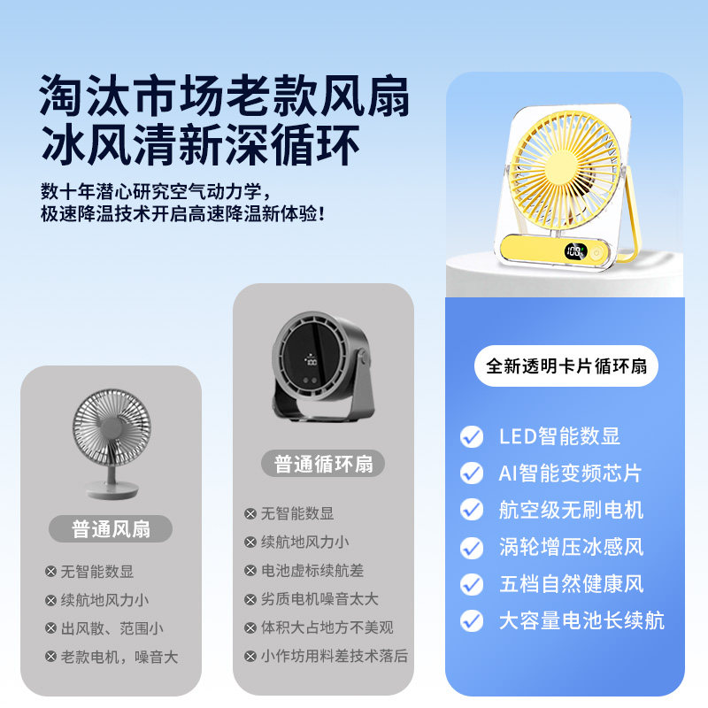 2025新款透明桌面小风扇超静音迷你便携式工位办公室桌上大风力随身手持usb充电风扇小型学生宿舍床上电风扇