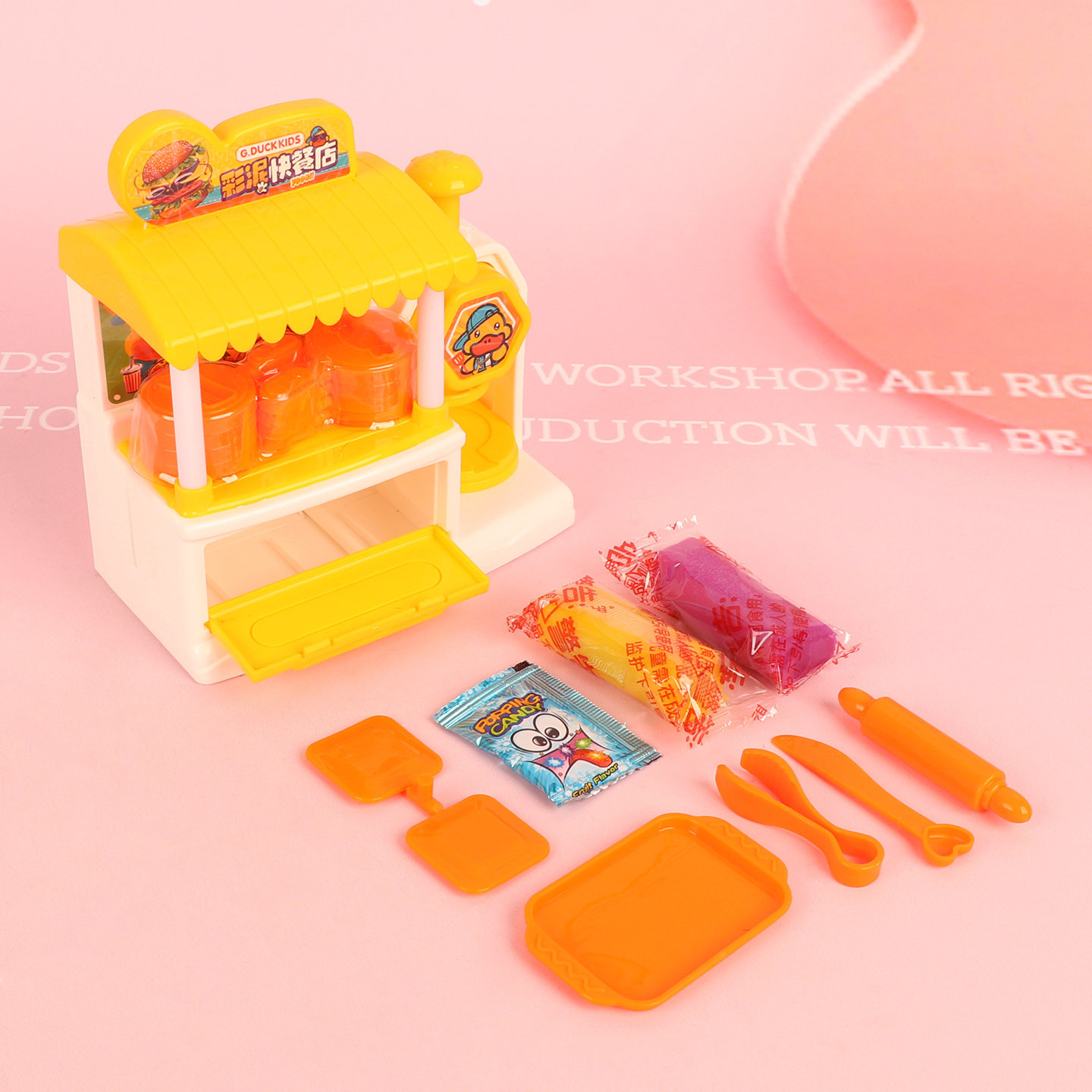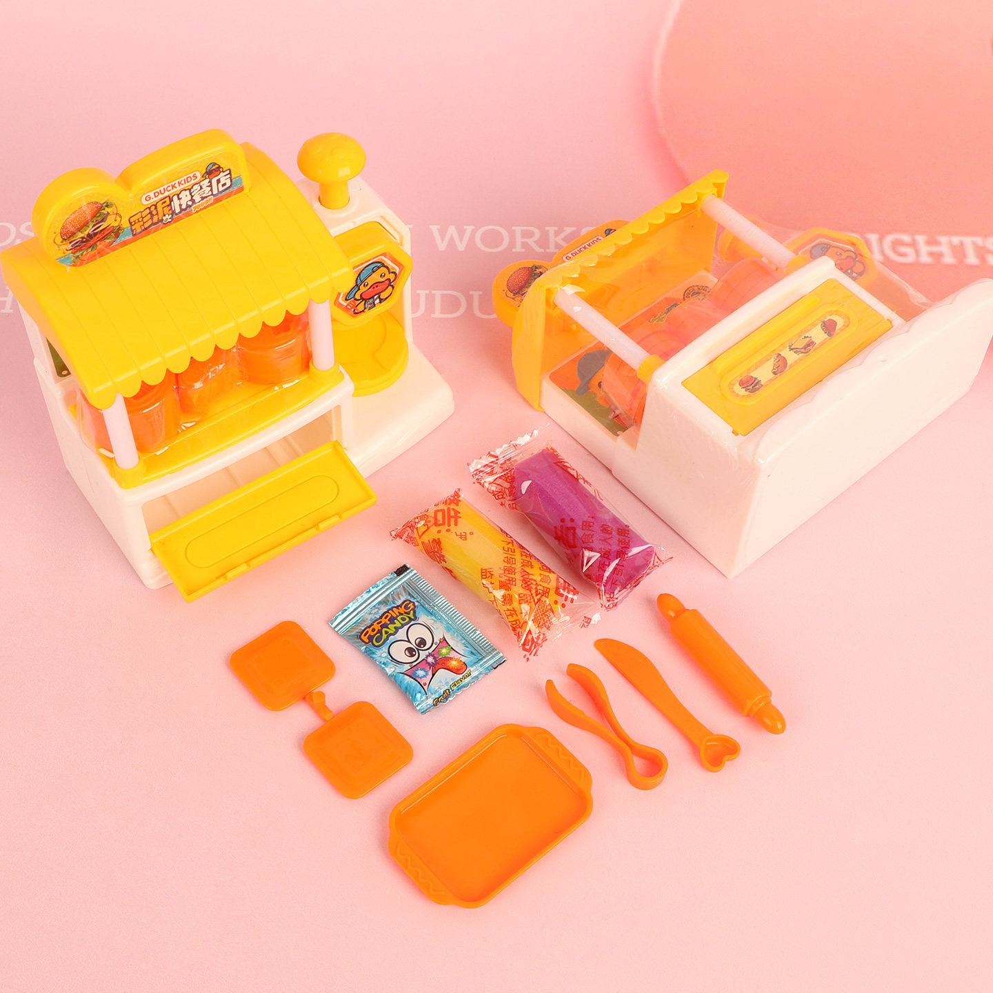 小黄鸭彩泥快餐店玩具手工彩泥制作厨房套装糖果零食