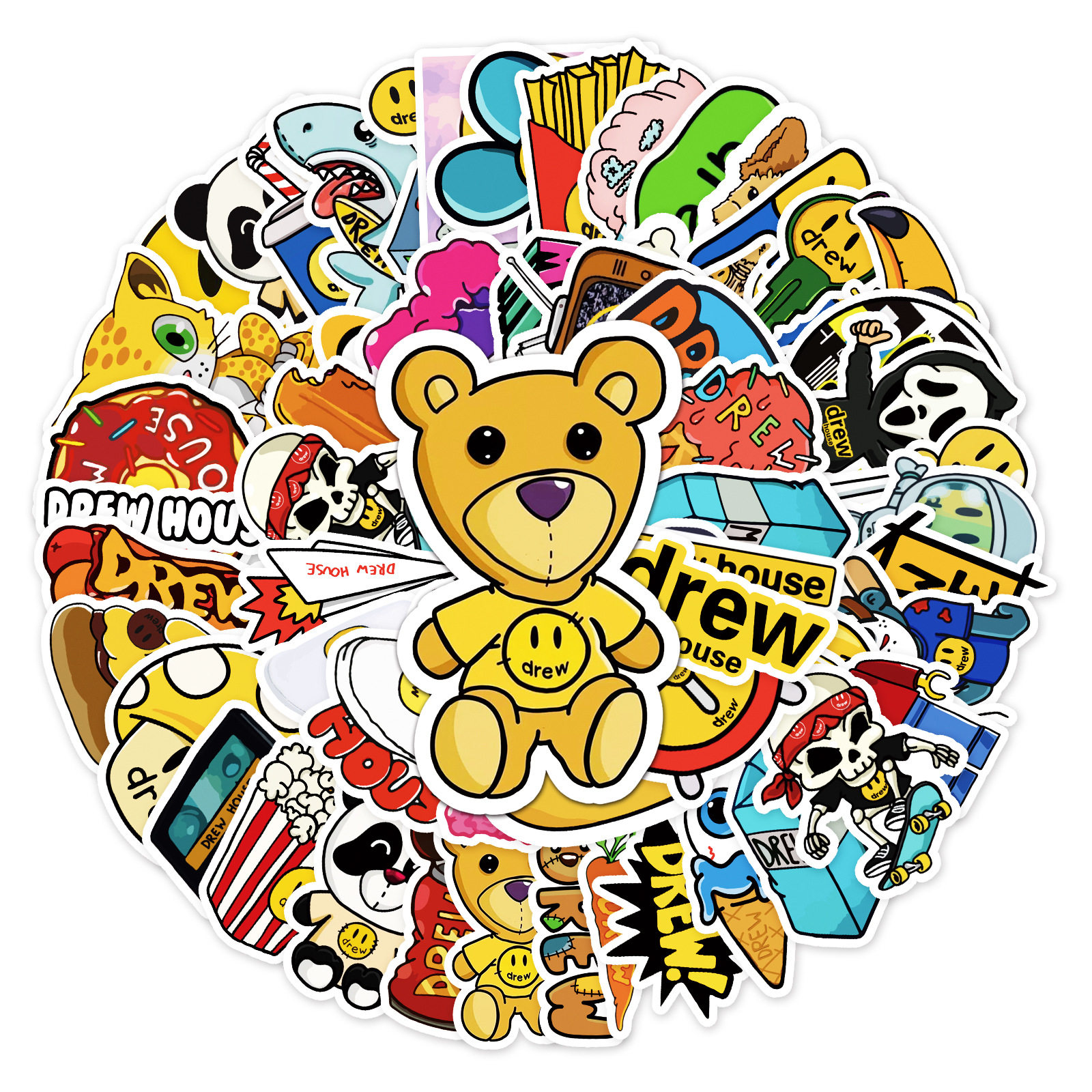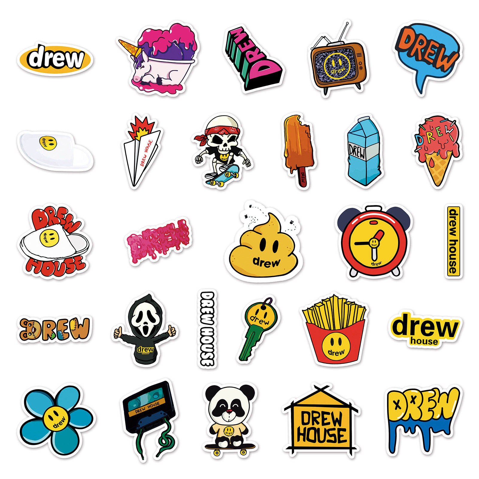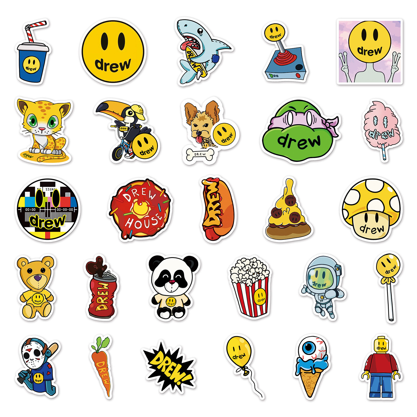 54张卡通DREW潮牌行李箱不重复行李箱死飞自行车陶瓷杯防水贴纸