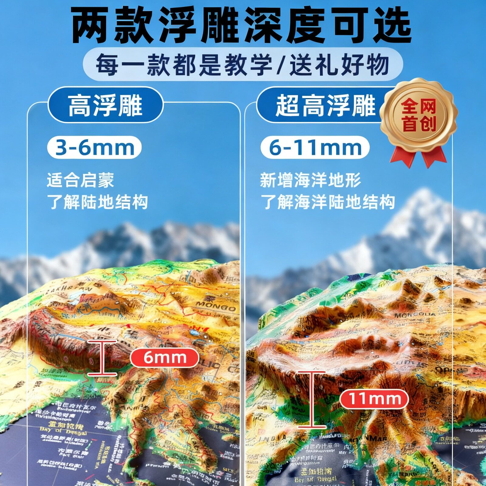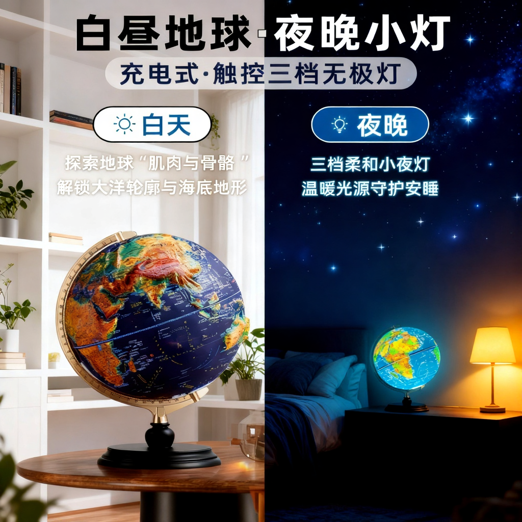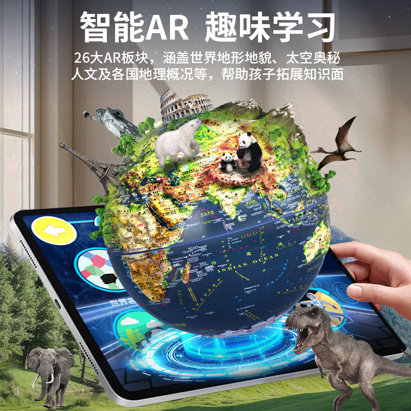 浮雕地球仪2026年新款3d立体悬浮凹凸AR模型正版初中生小学生专用新年礼物男孩生日礼物高档木质轻奢摆件地理