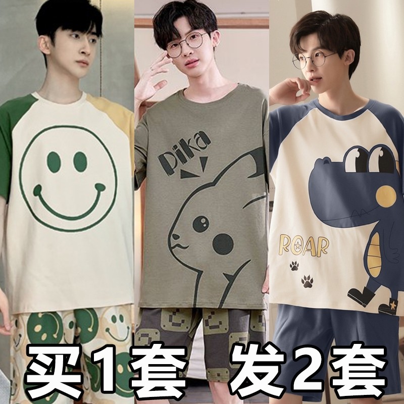 男款睡衣夏季仿棉卡通短袖裤套装加大码加肥可外穿夏天男士家居服