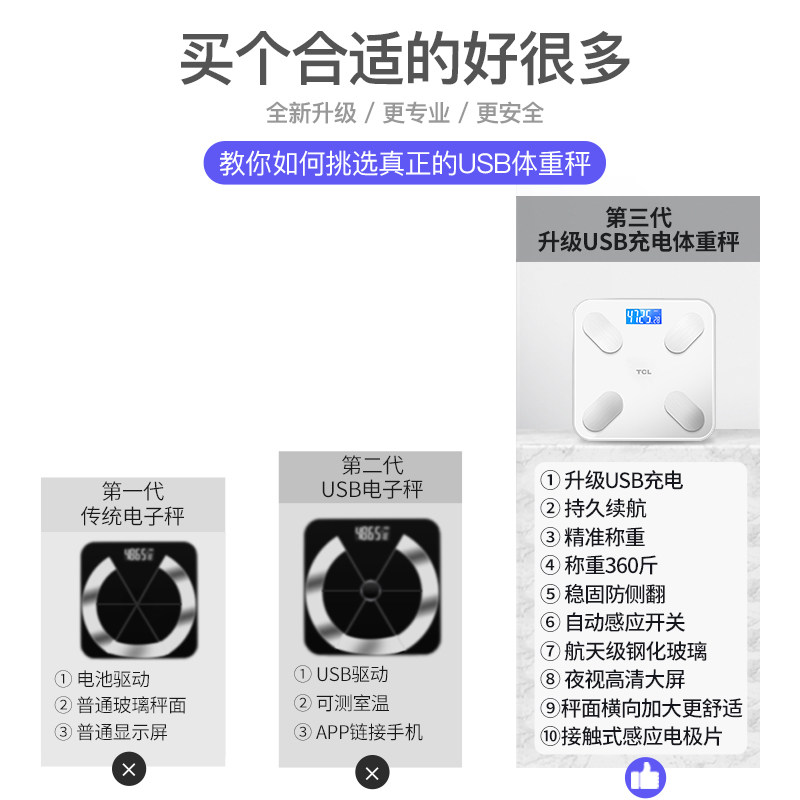 TCL充电防爆体重秤计智能高精准的体脂称家用宿舍小型减肥人体秤