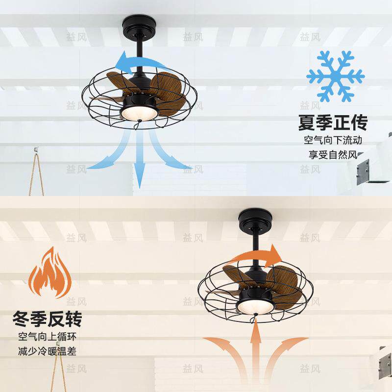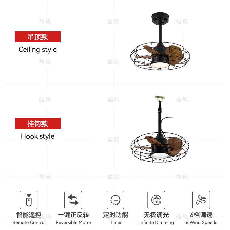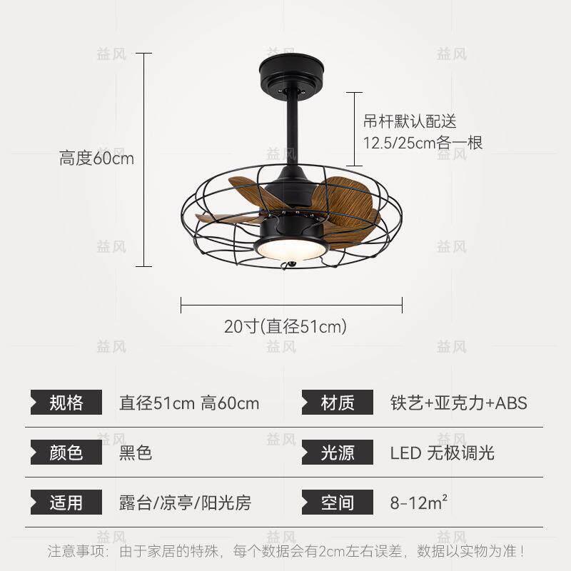 防水防晒阳光房吊扇灯挂钩式凉亭户外风扇灯工业风带灯吊扇笼子式