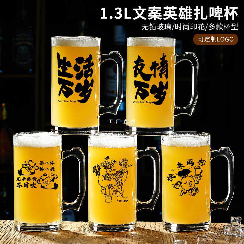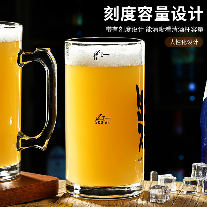 啤酒杯大容量网红1000毫升带把加厚扎啤杯创意文案玻璃杯酒杯