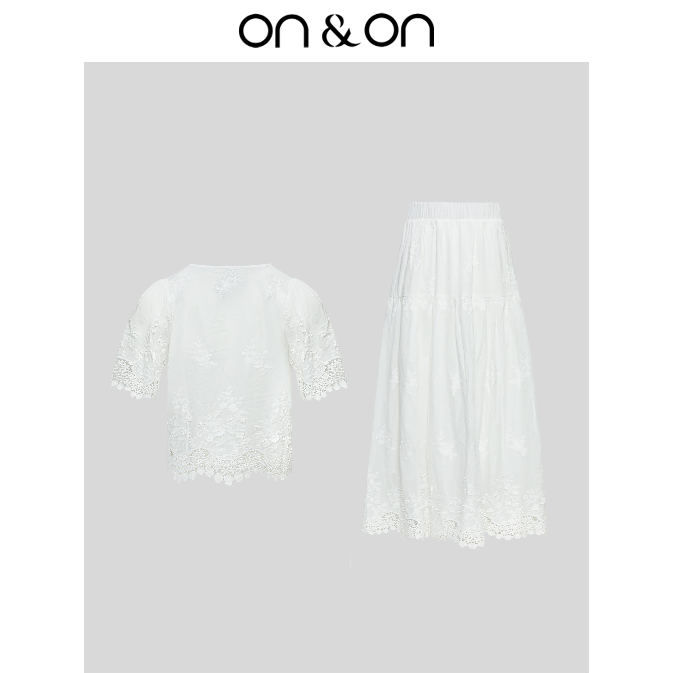 ON&ON/安乃安2025秋季新款时尚休闲立体绣花小衫+高腰半身裙套装