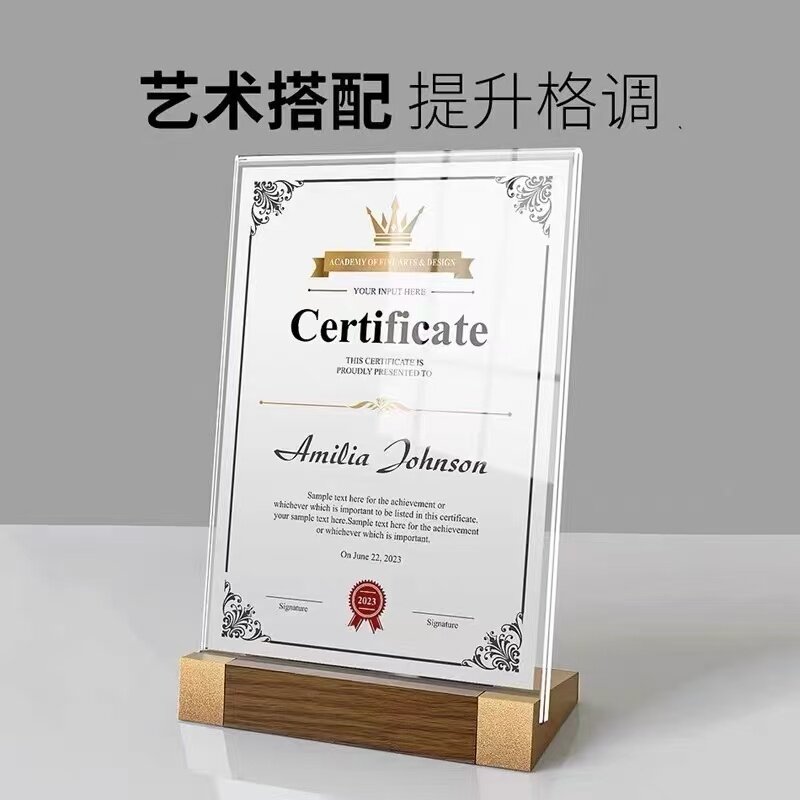A4亚克力相框摆台荣誉证件书框架专利授权书外壳装裱框奖状展示框
