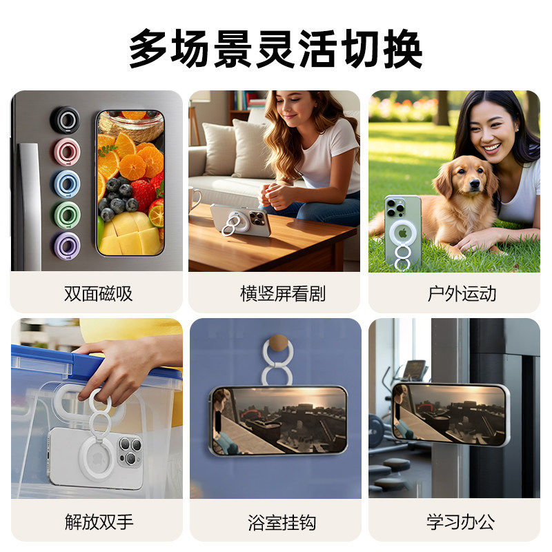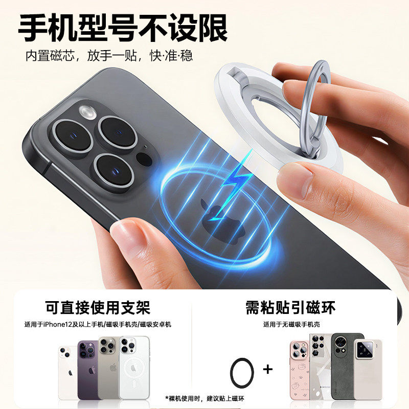 新款手机支架magsafe双面磁吸指环扣强力车载多功能支撑旋转桌面