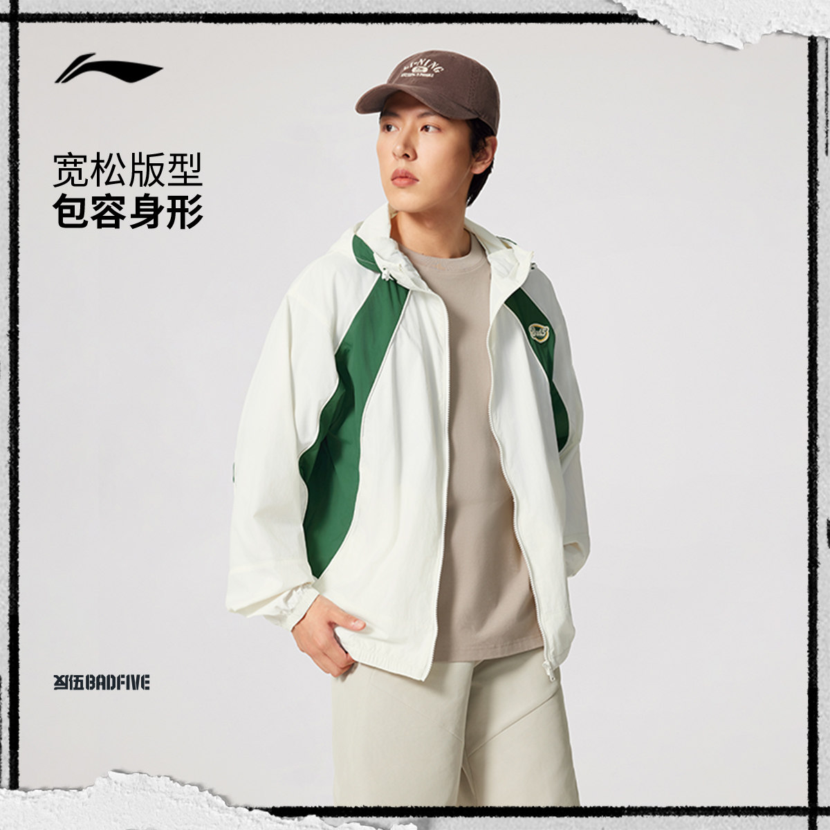 李宁反伍BADFIVE风衣男士 新款连帽防风服夹克春秋风衣运动外套