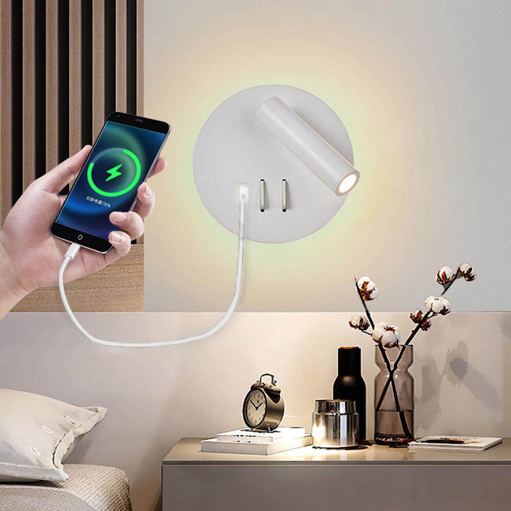 卧室酒店床头壁灯阅读灯现代简约铝材LED旋转壁灯带USB可充电壁灯