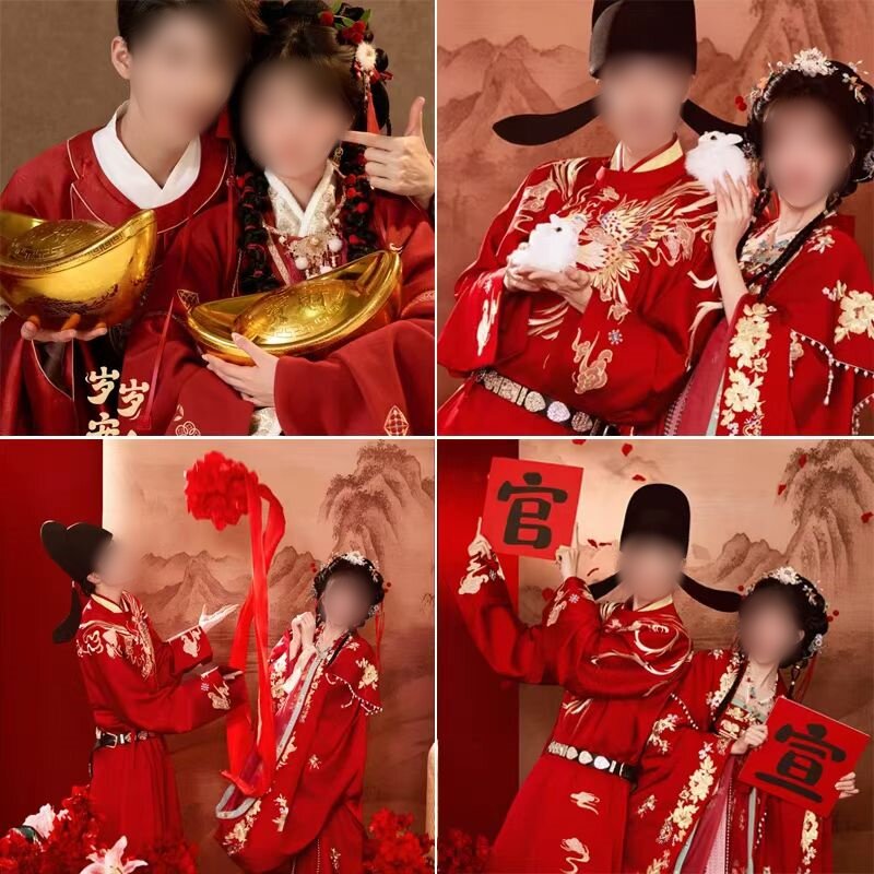 2026婚纱摄影新中式古装拍照道具金元宝官宣手拿板红绣球仿小白兔