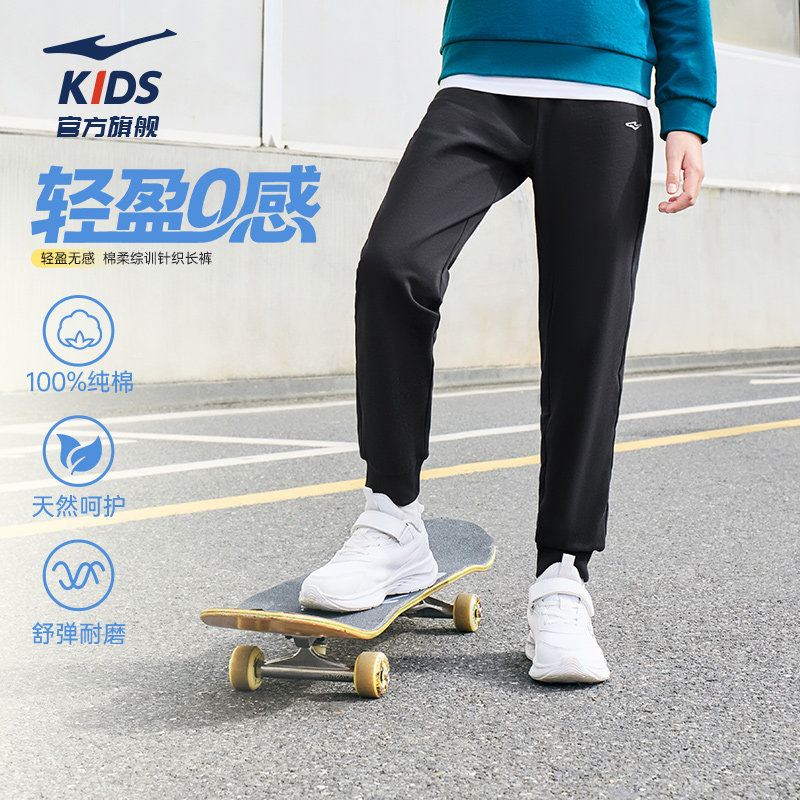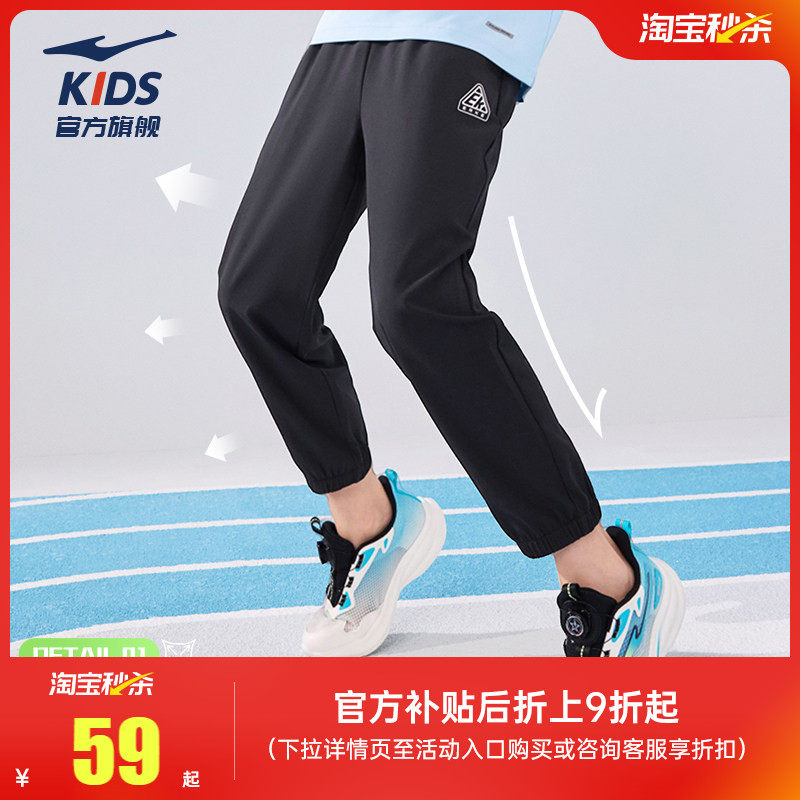 鸿星尔克童装2026春季男童裤子儿童运动裤中大童卫裤女童薄款长裤