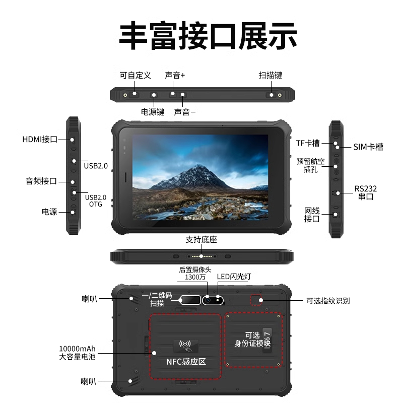 8/10寸工业三防平板电脑手持防爆加固终端麒麟鸿蒙系统车载高亮摔