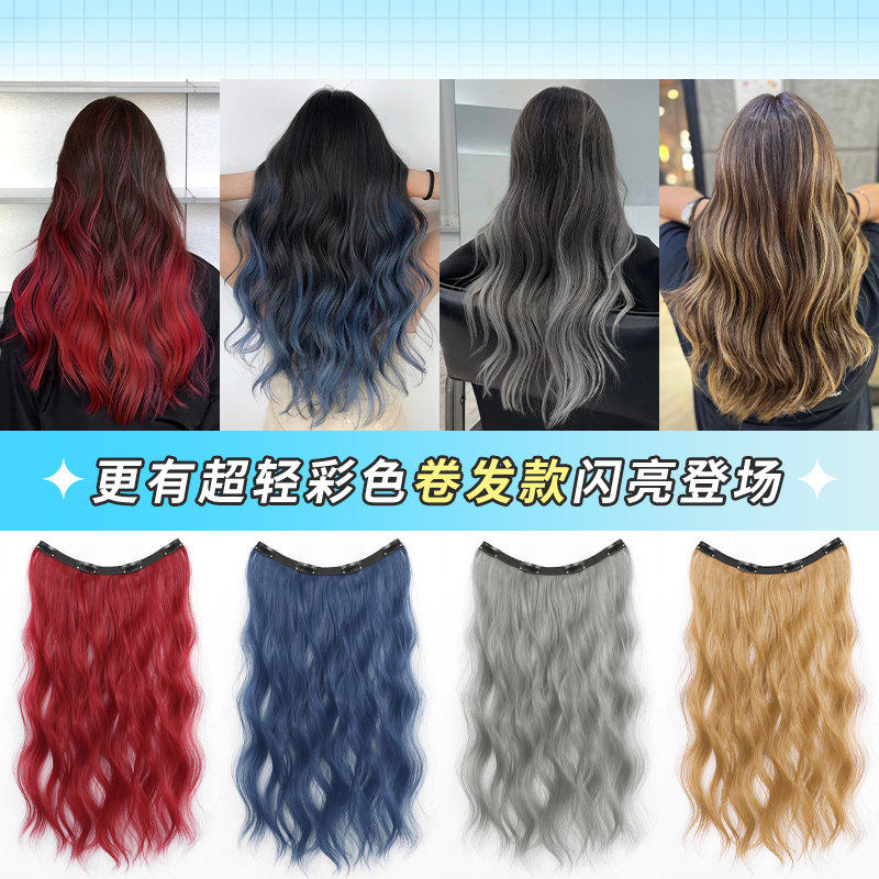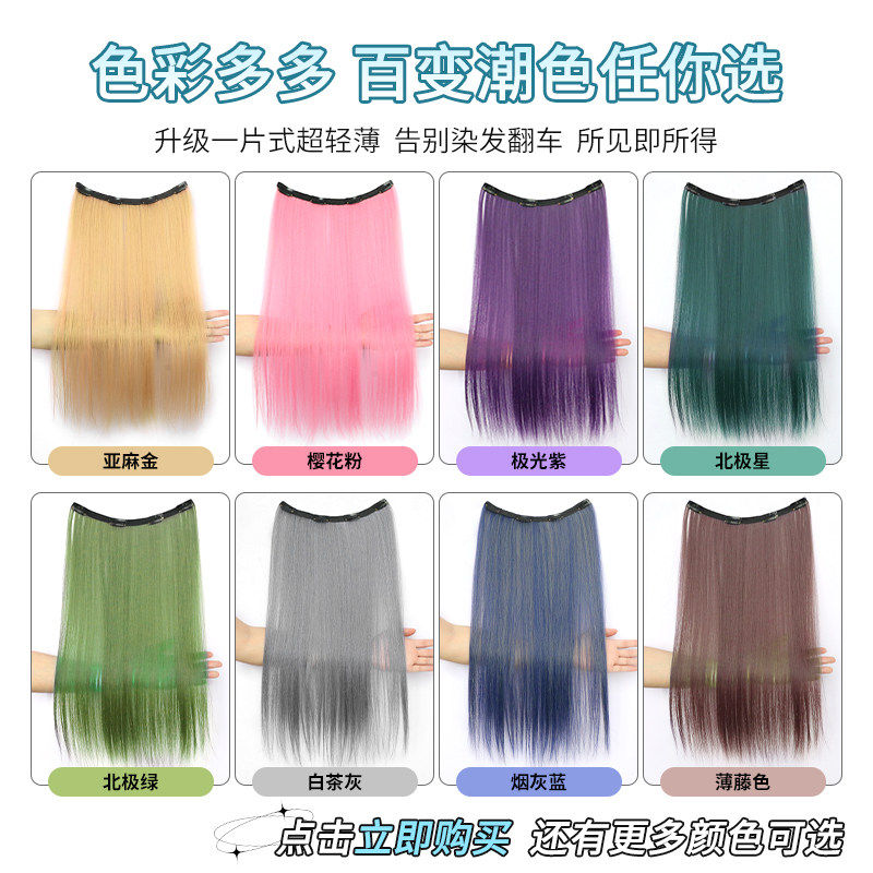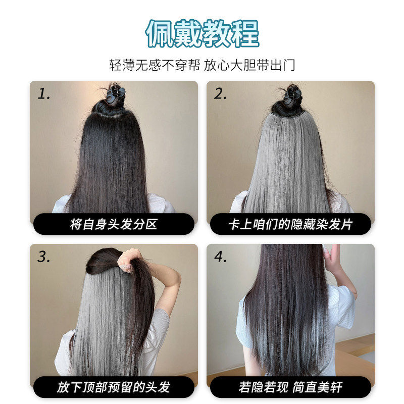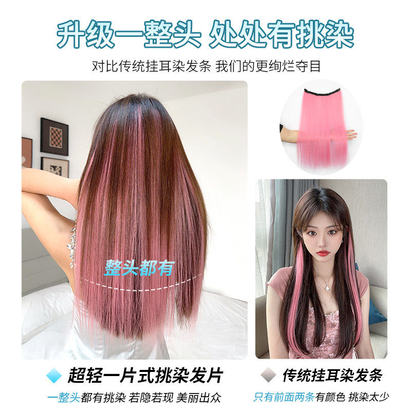 超轻薄假发片女一片式耳挂染挑染直发隐藏染接发片彩色漂染假发条