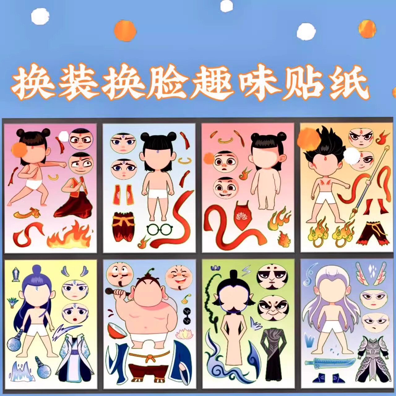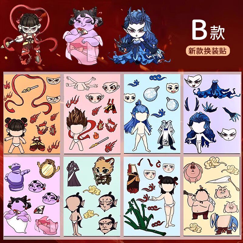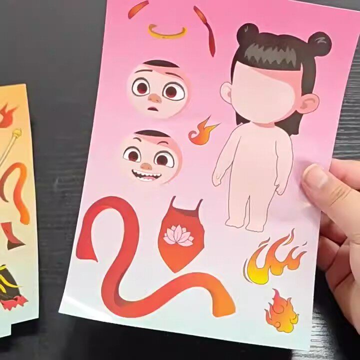 哪咤2之魔童闹海换装贴纸免裁剪周边安静书敖丙表情儿童diy粘贴画