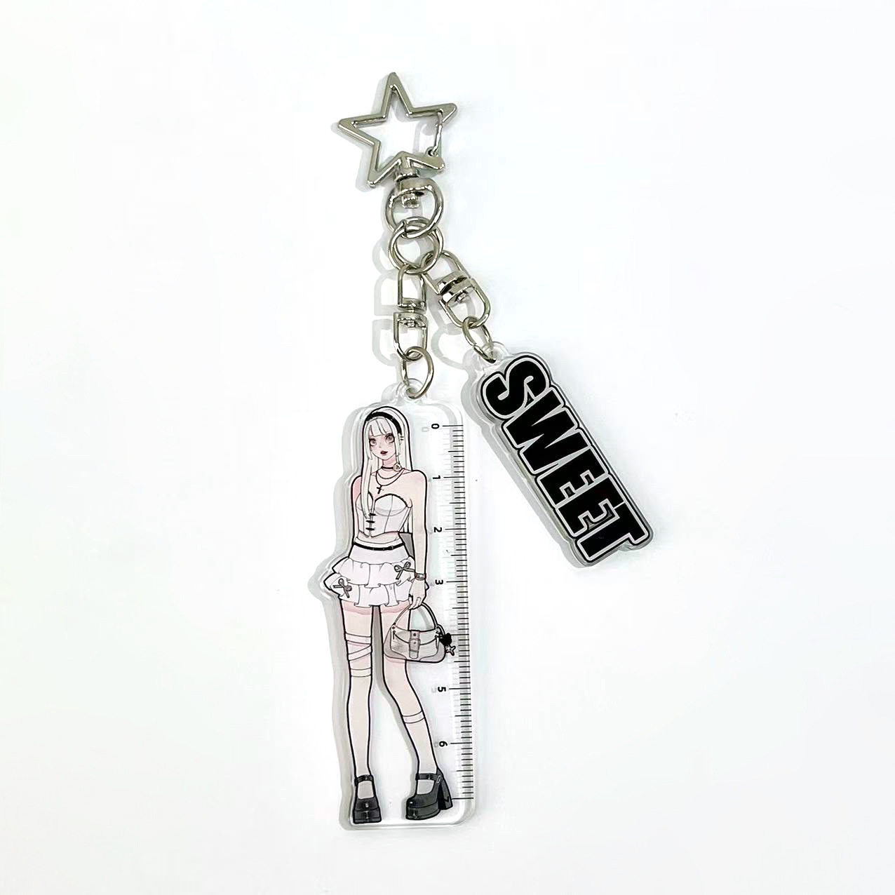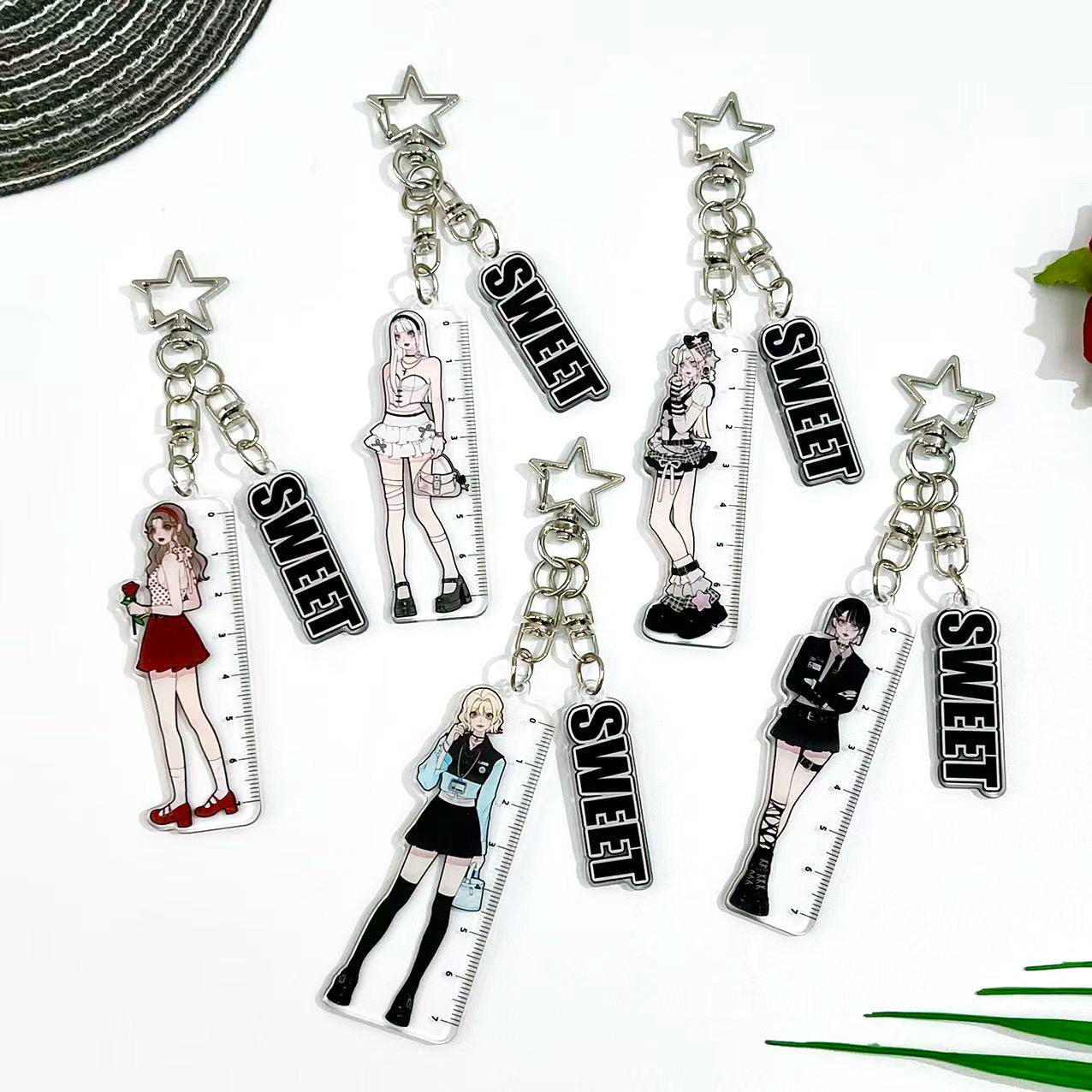 新款亚克力掌心尺挂件学生便携7cm直尺钥匙扣书包配饰装饰品