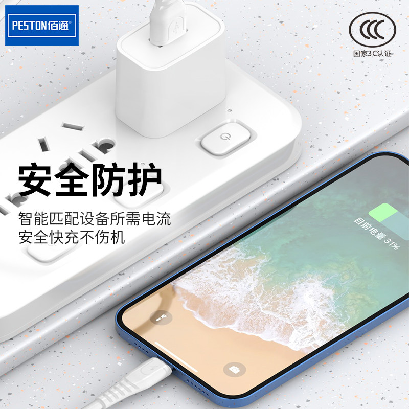 佰通3C安全认证2A充电器适用于iPhone14/13/12电脑iPad车通用智能高速11Promax安卓手机快充数据线M4充电插头