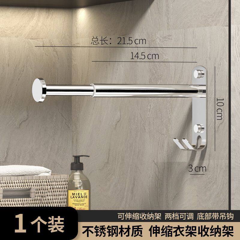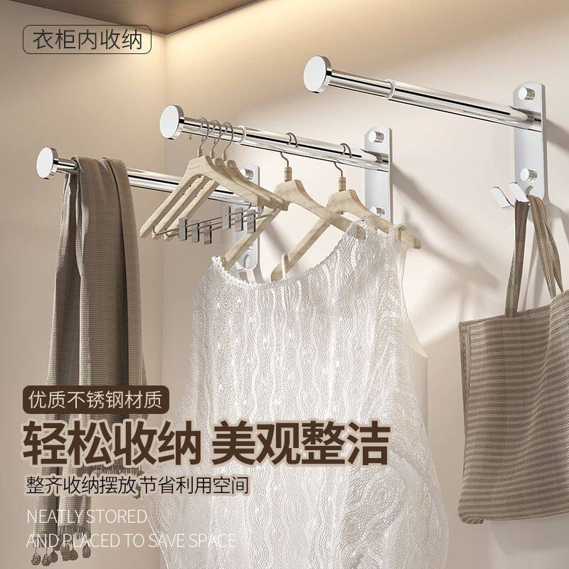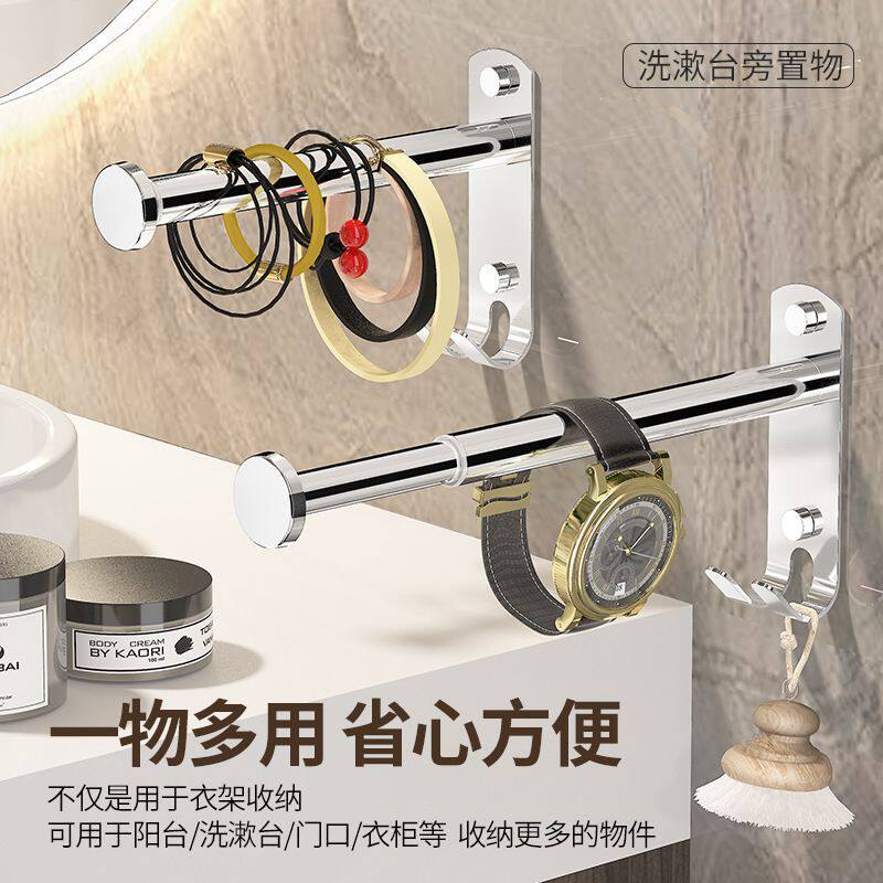 不锈钢衣架收纳神器整理架免打孔阳台壁挂伸缩挂杆晾衣架子墙面